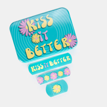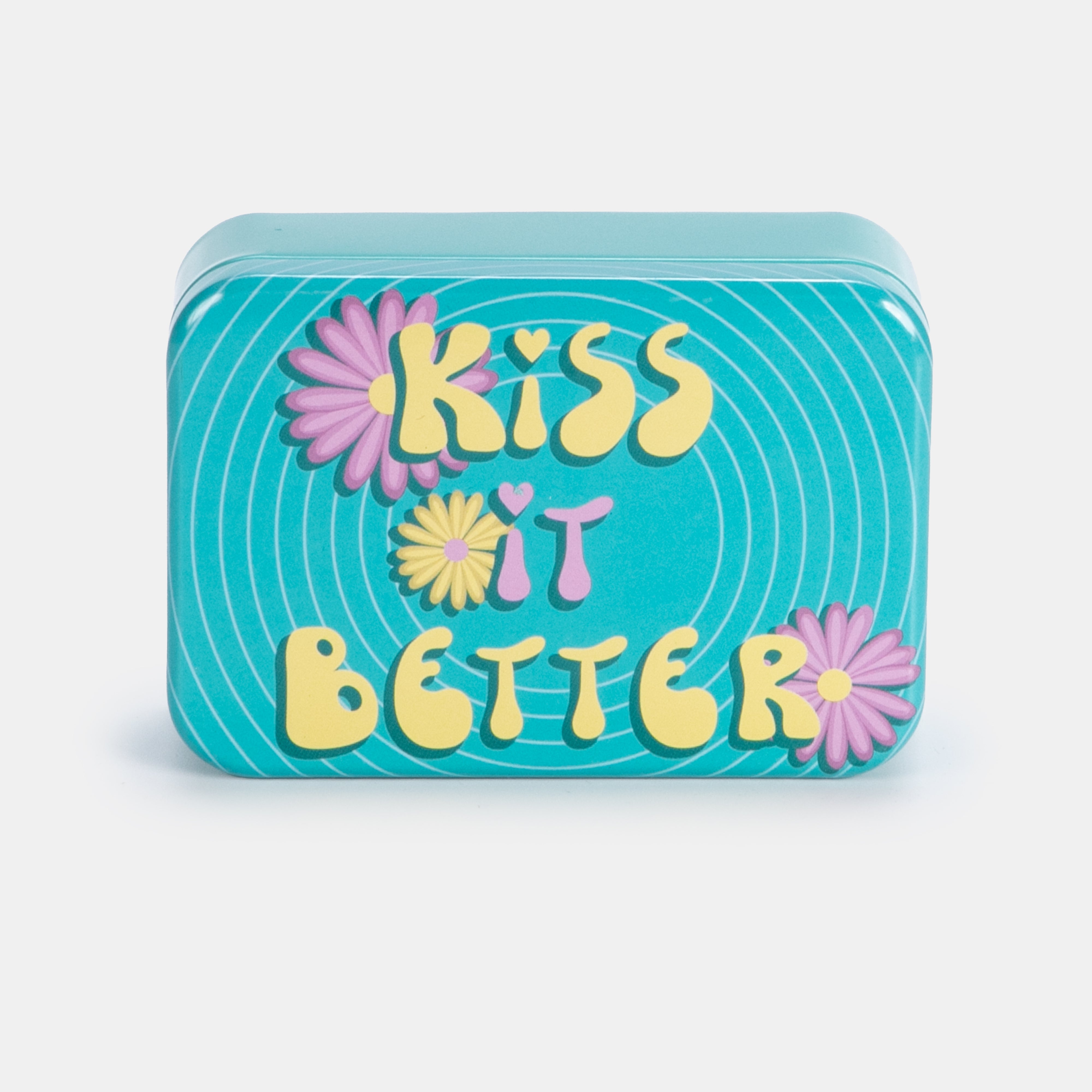Our new streamline gift tin houses 30 excellent quality plasters printed with the words Kiss It Better and a funky daisy design. It makes for a useful gift and a feminine addition to your first aid kit.