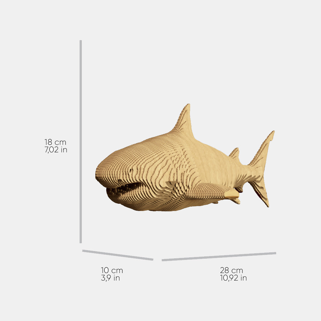 The GREAT WHITE SHARK is a mysterious inhabitant of the ocean depths and one of the largest predators. These incredible creatures inspire admiration and fear. Their strength and hunting skills are impressive. Sharks are intelligent and have excellent instincts. Dive into the depths of your creativity and create your own great white shark cardboard model. Add a symbol of strength and endurance to your interior. Details quantity: 85 pcs. Assembled puzzle size: 18x10x28 cm