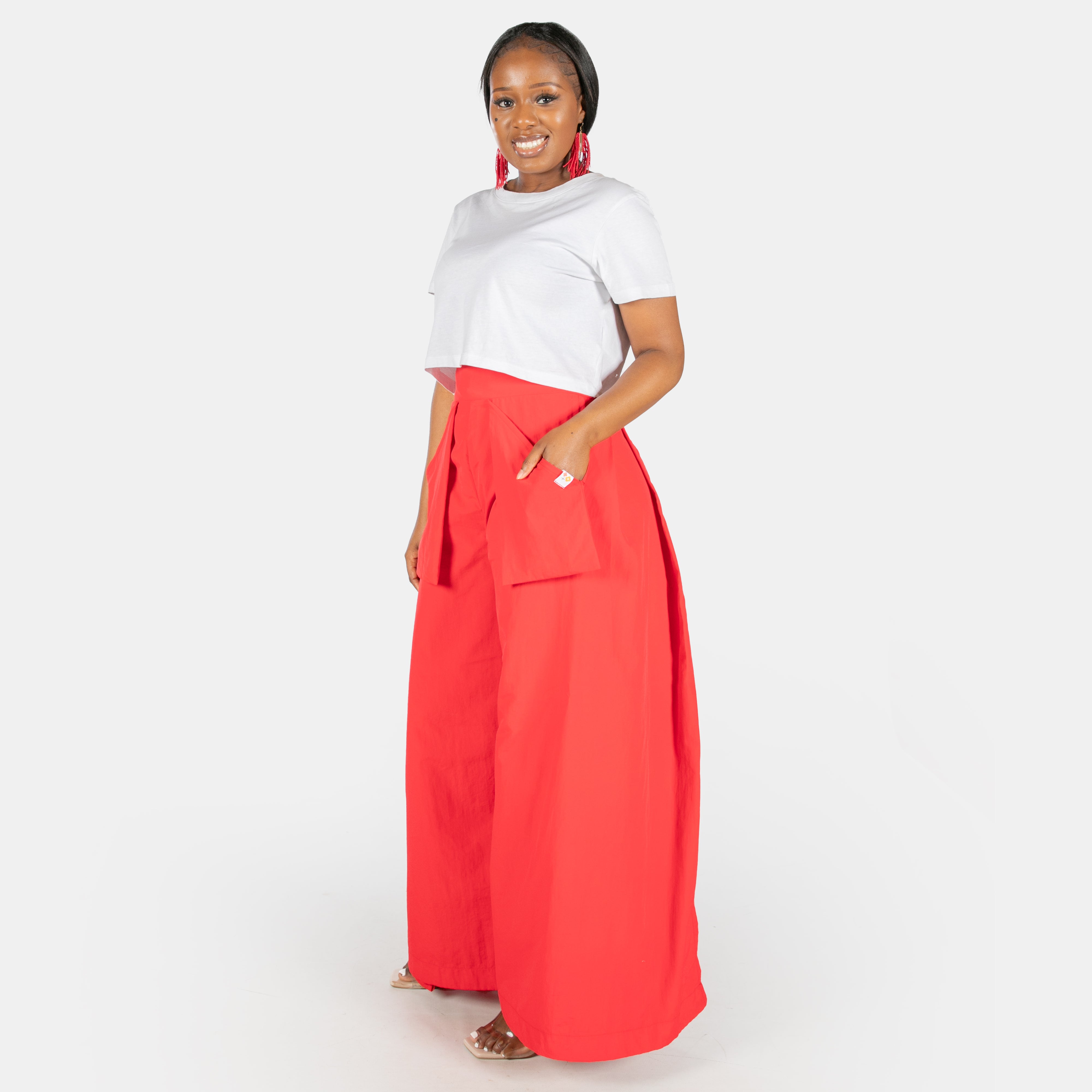 Wear these pants with flats or heels but the simpler you keep the look the more dynamic the silhouette.