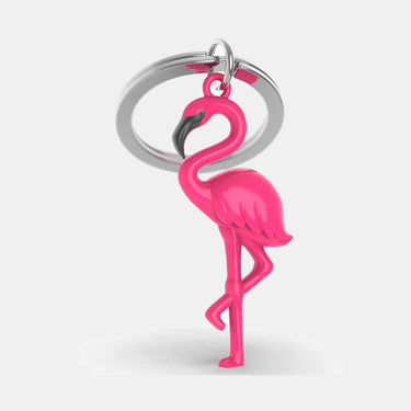 Miniature 3D Pink Flamingo Charm Metal Keyring