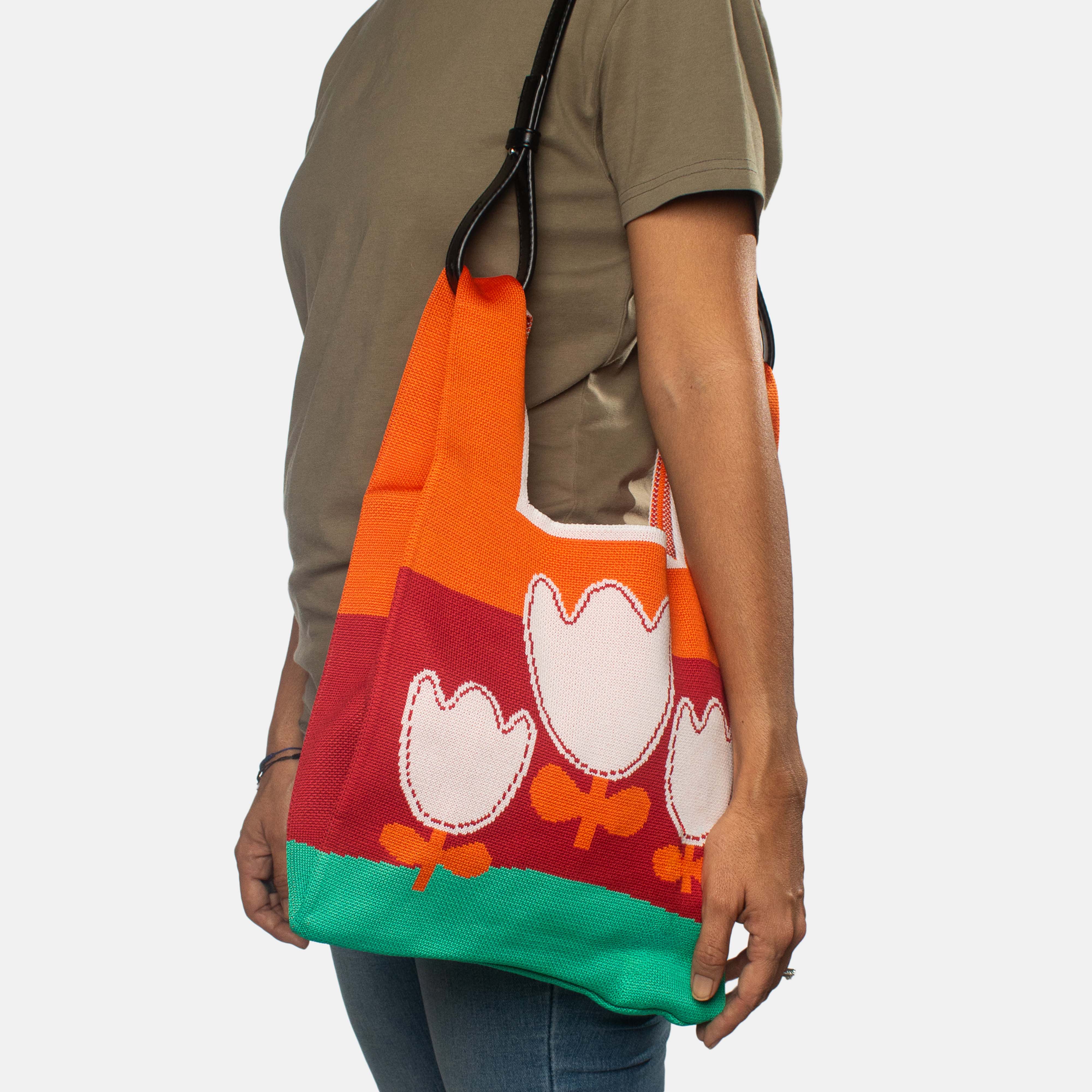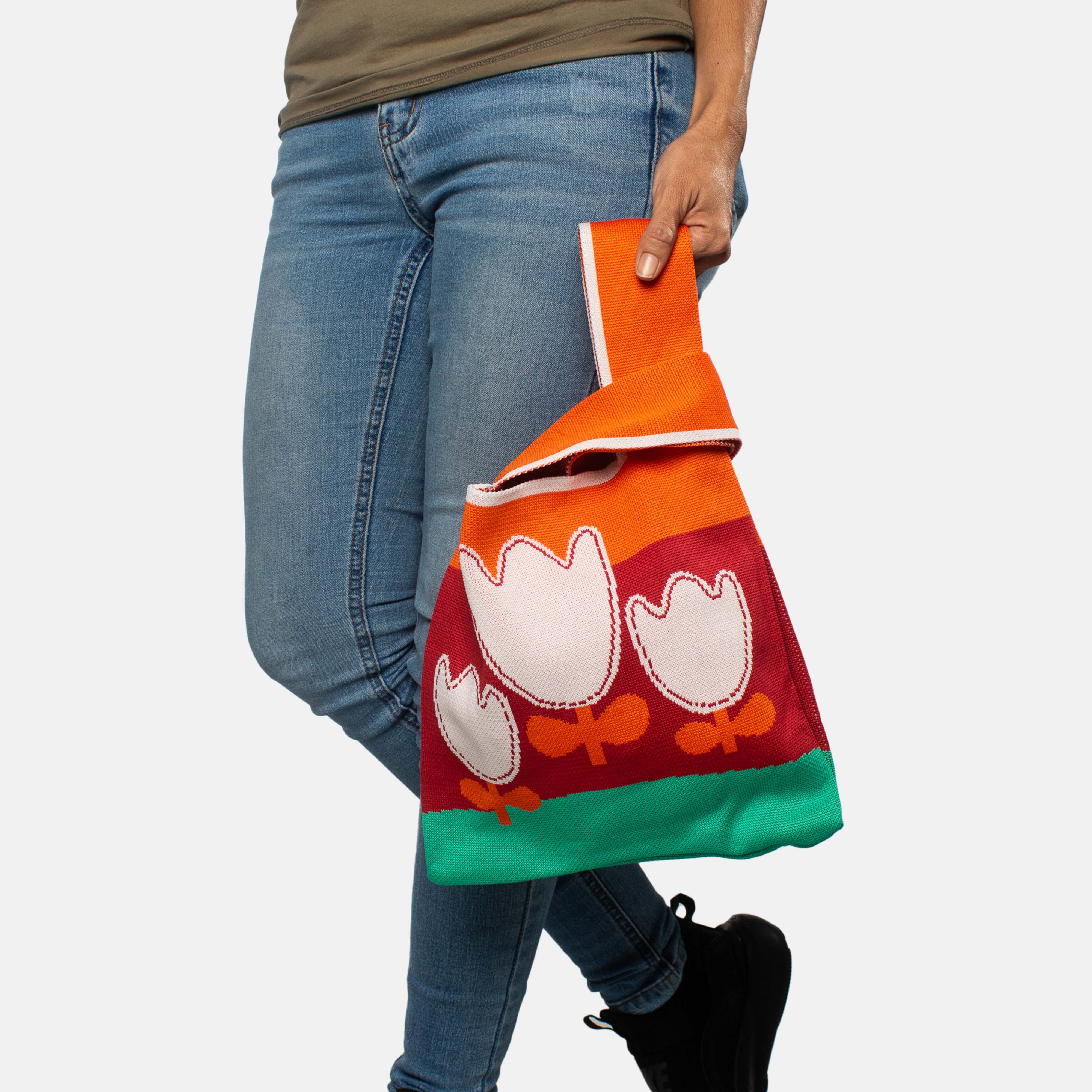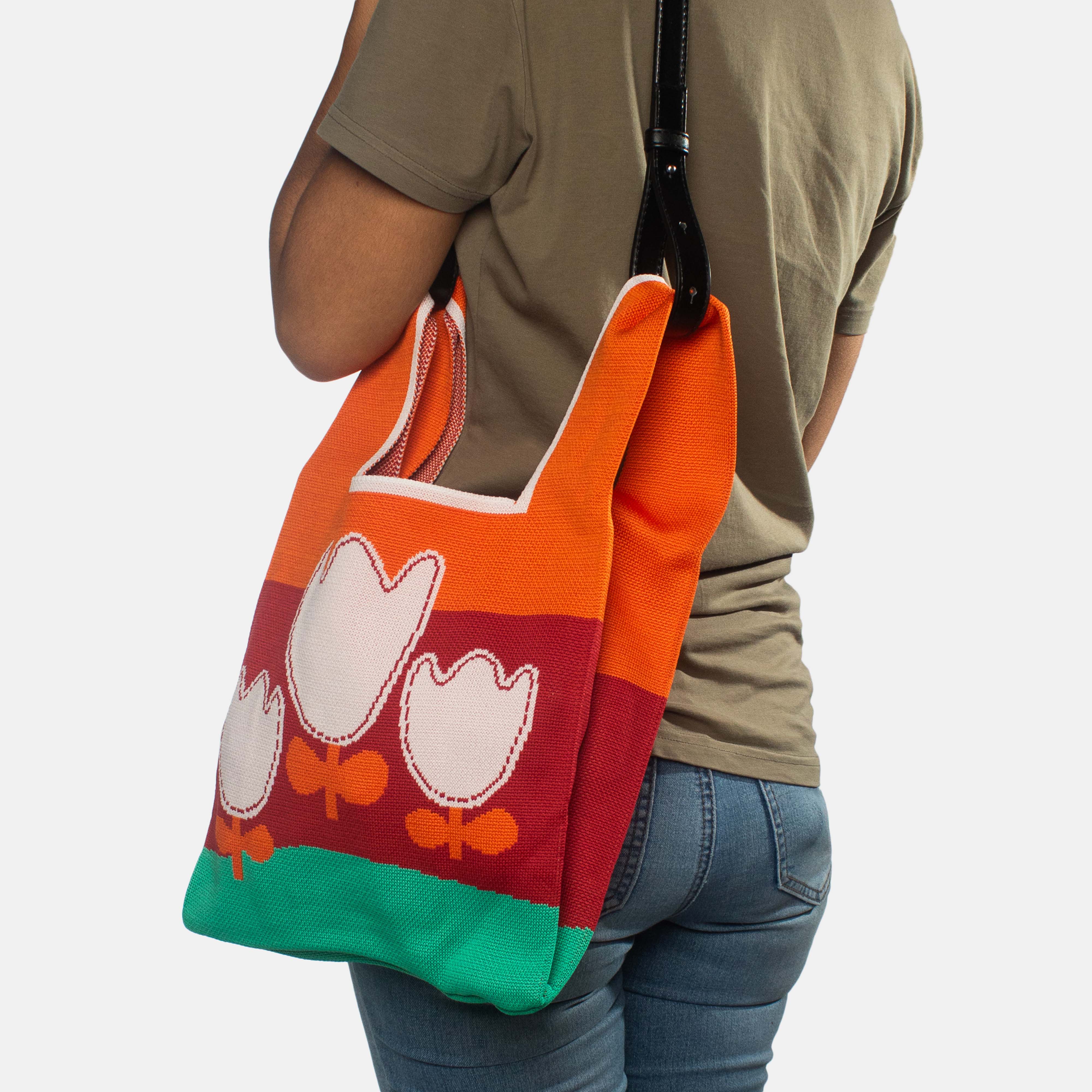 Big sister to the Jacky Bag, this bag is knitted in a stretch and an array of great pattern and colour.