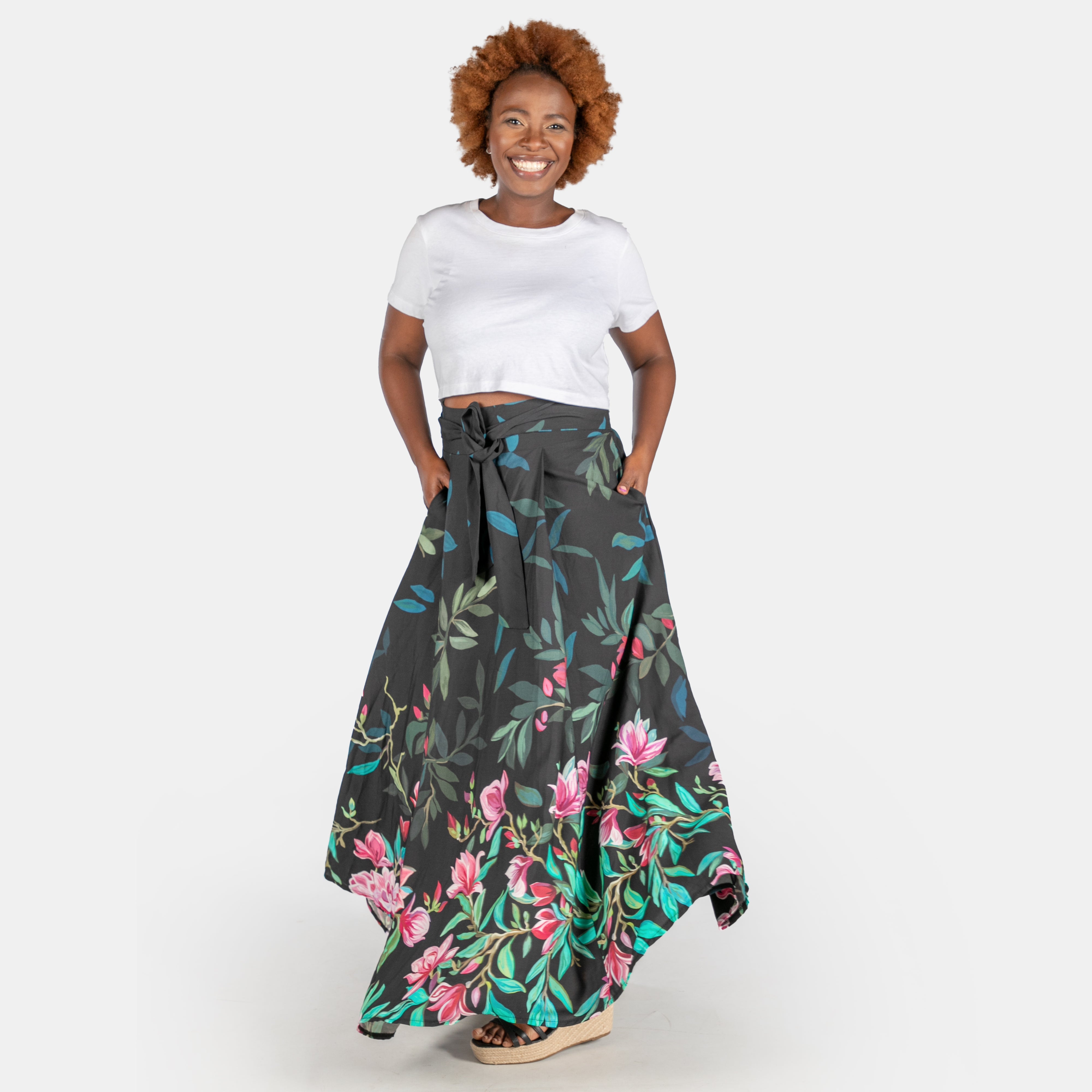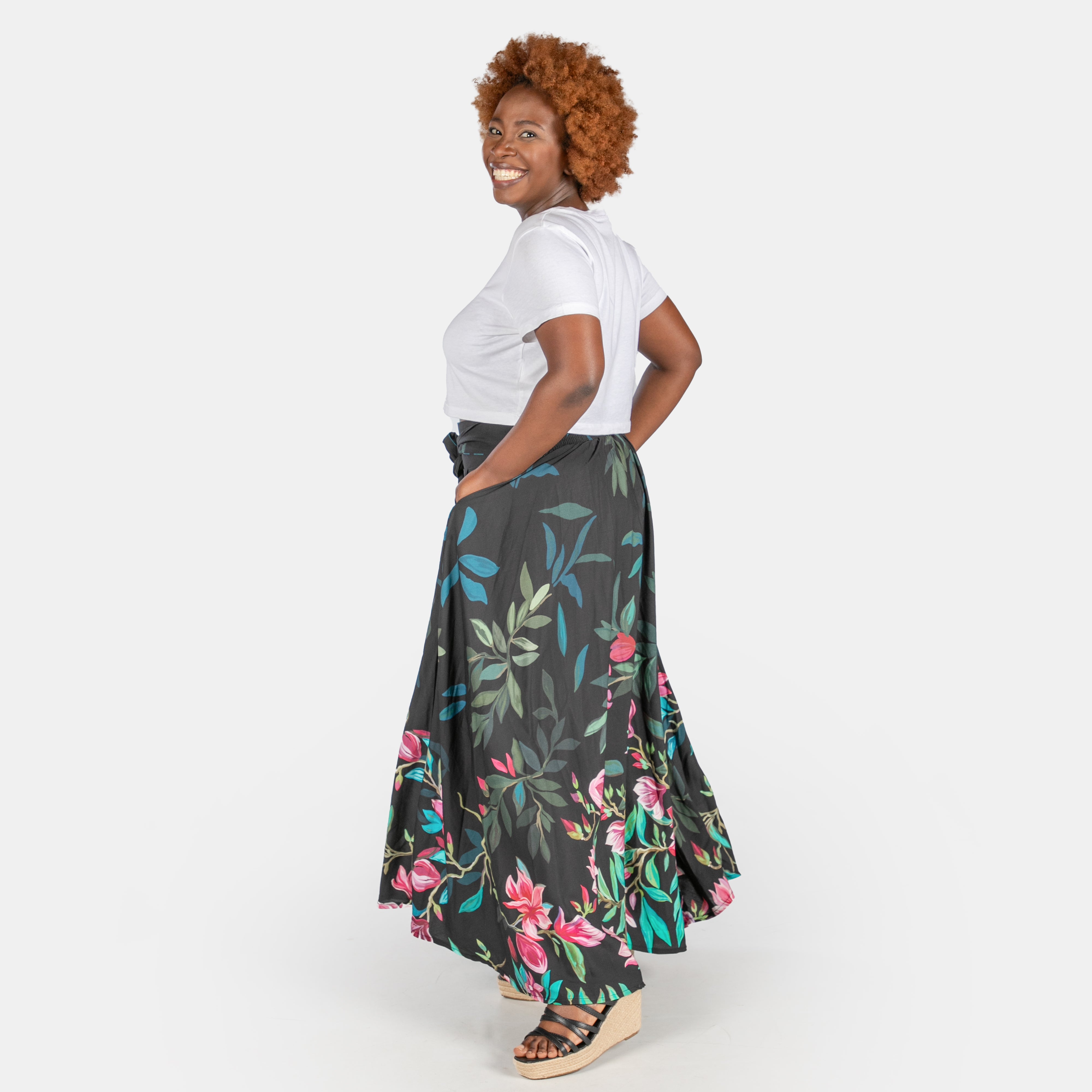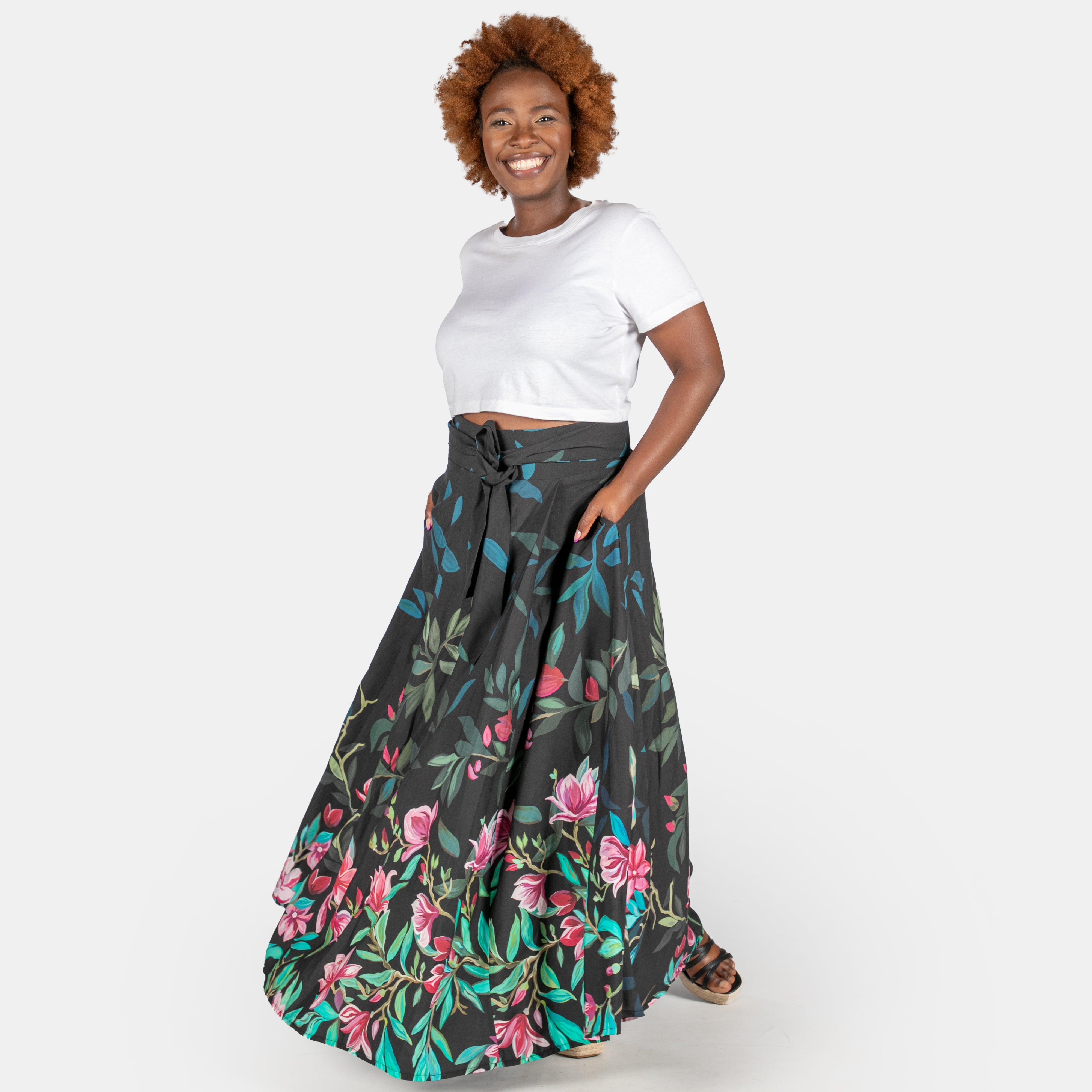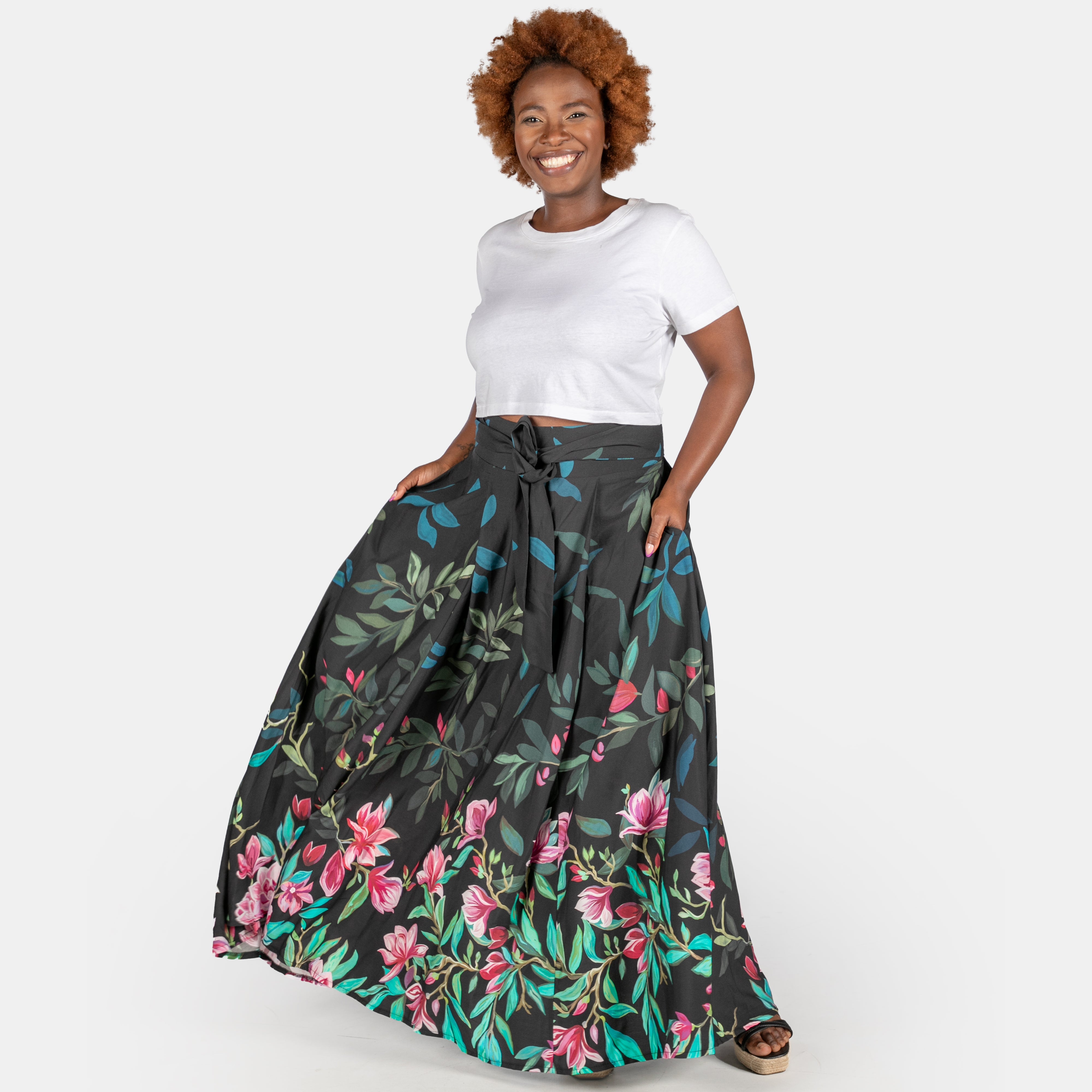 This flowing long skirt adds an elegant statement garment to any fashionista's wardrobe.