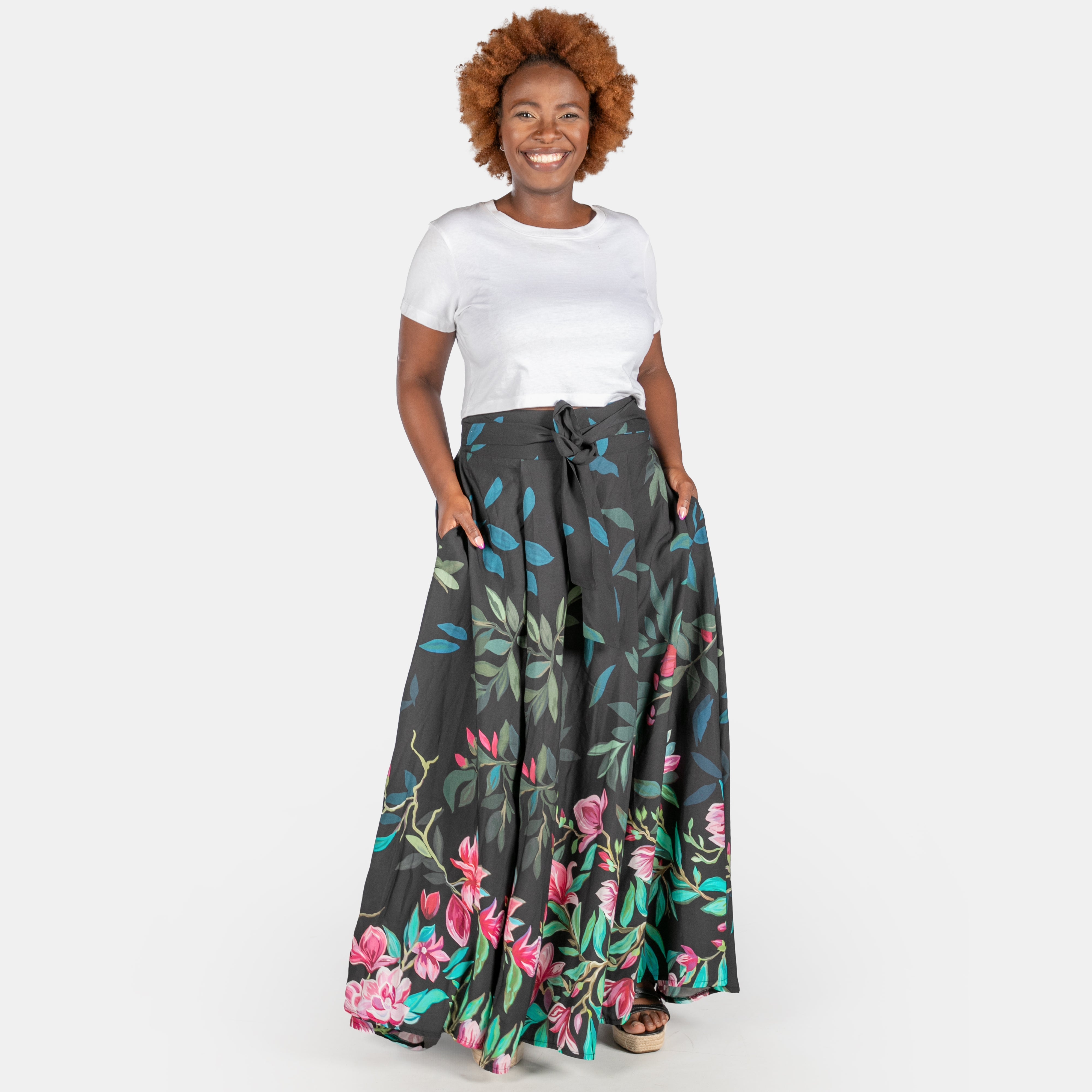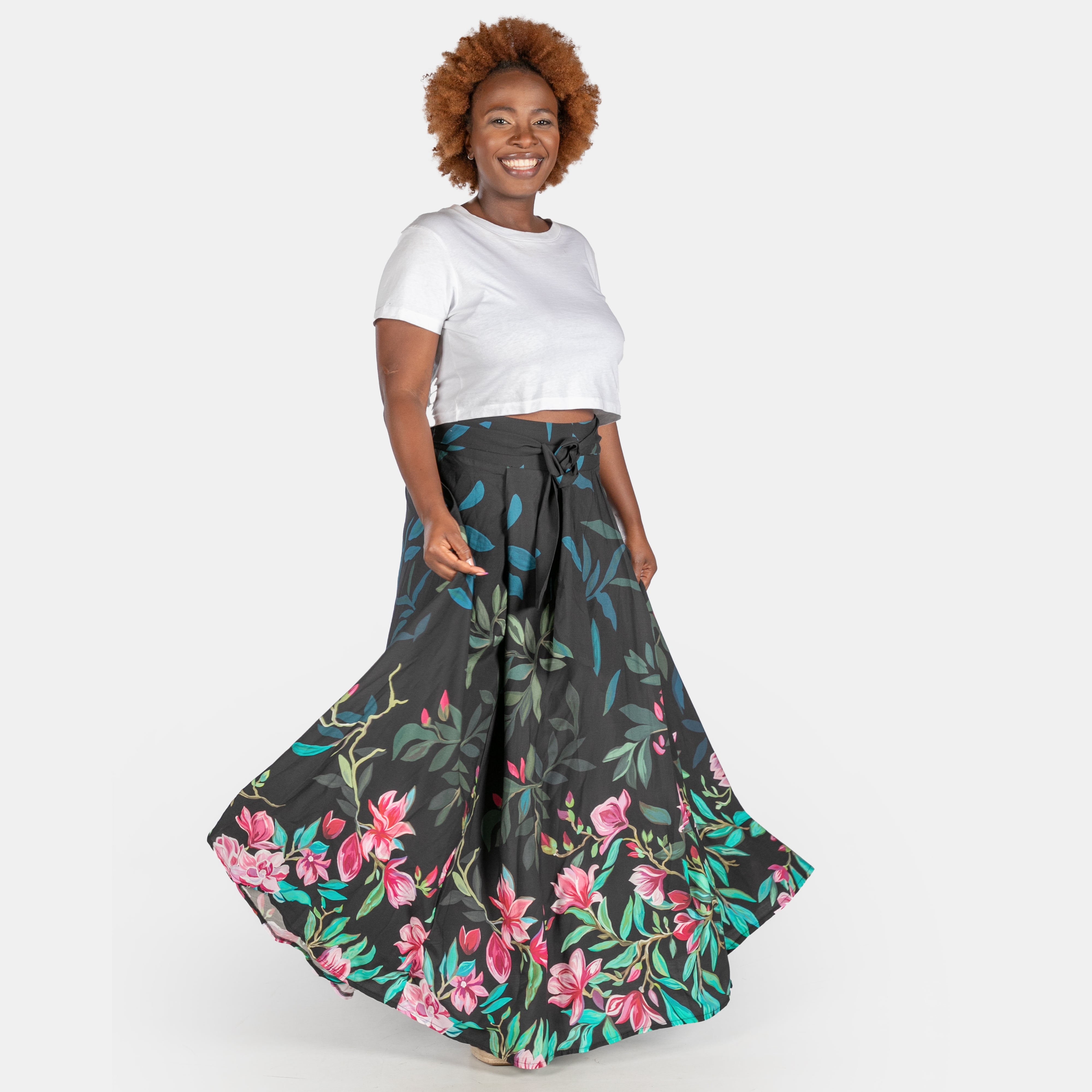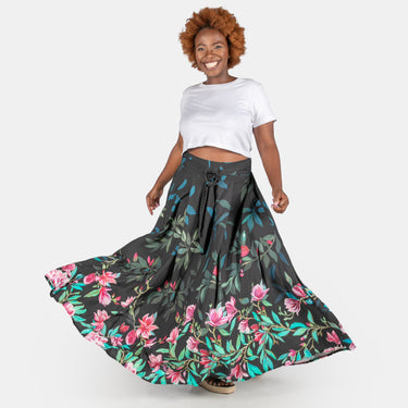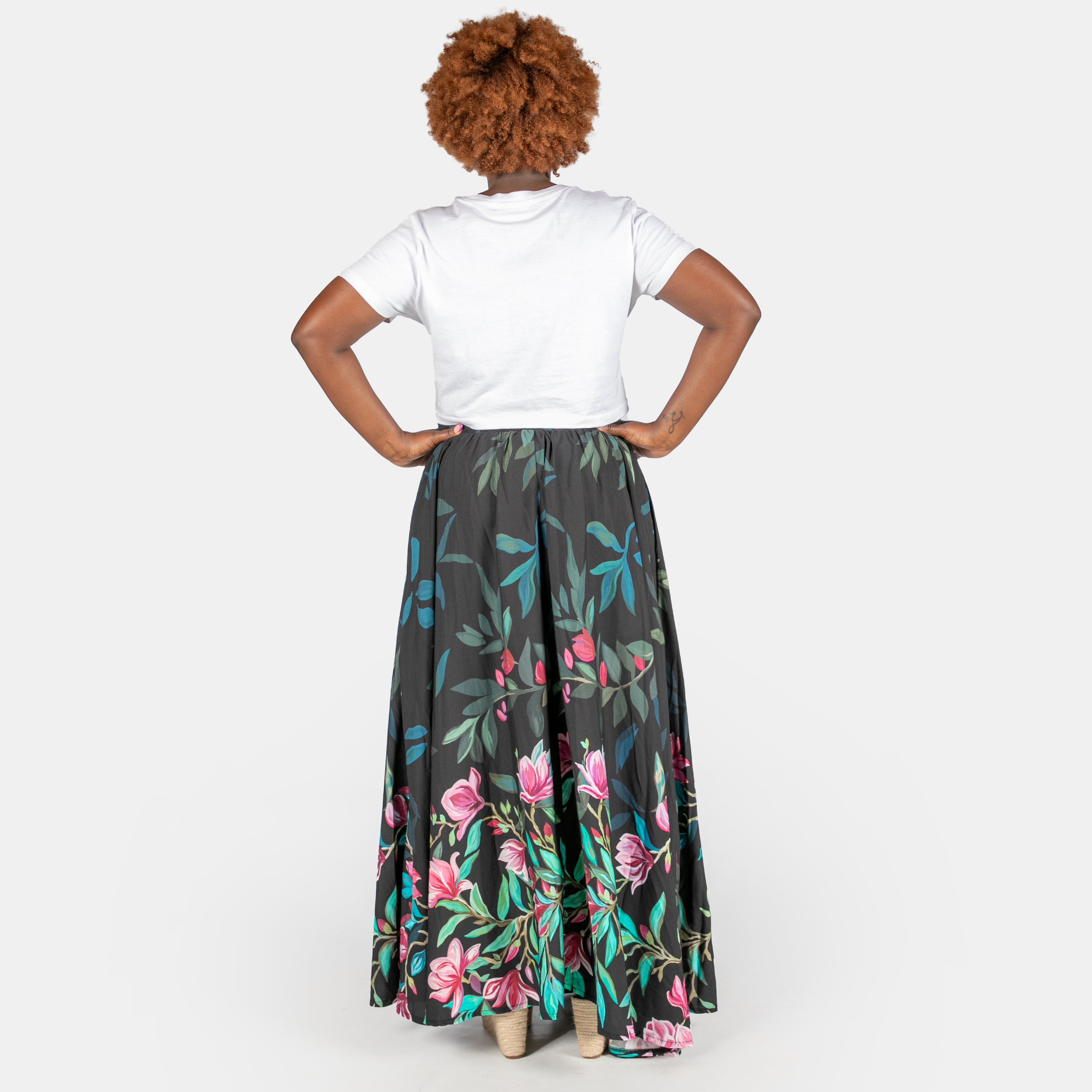 This flowing long skirt adds an elegant statement garment to any fashionista's wardrobe.