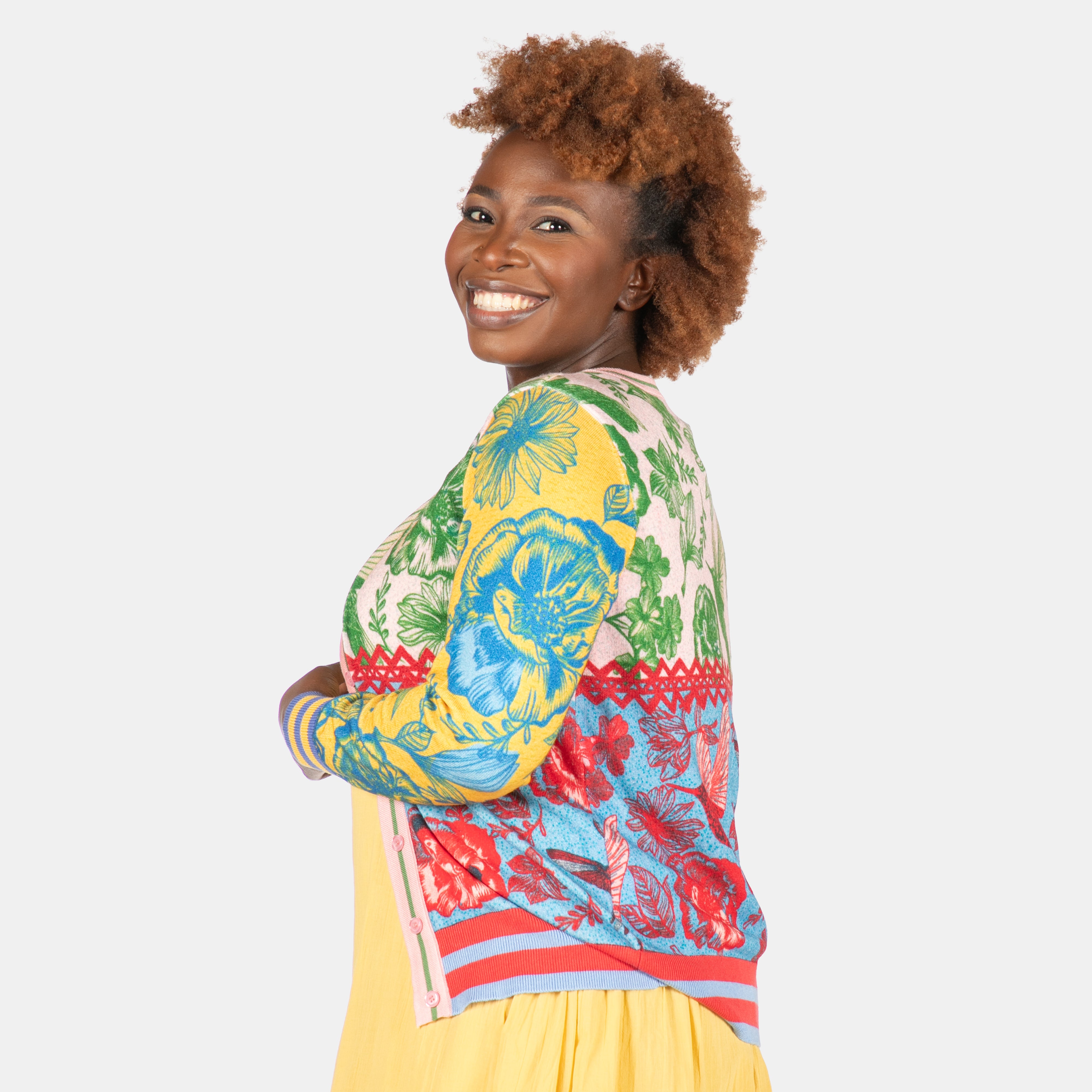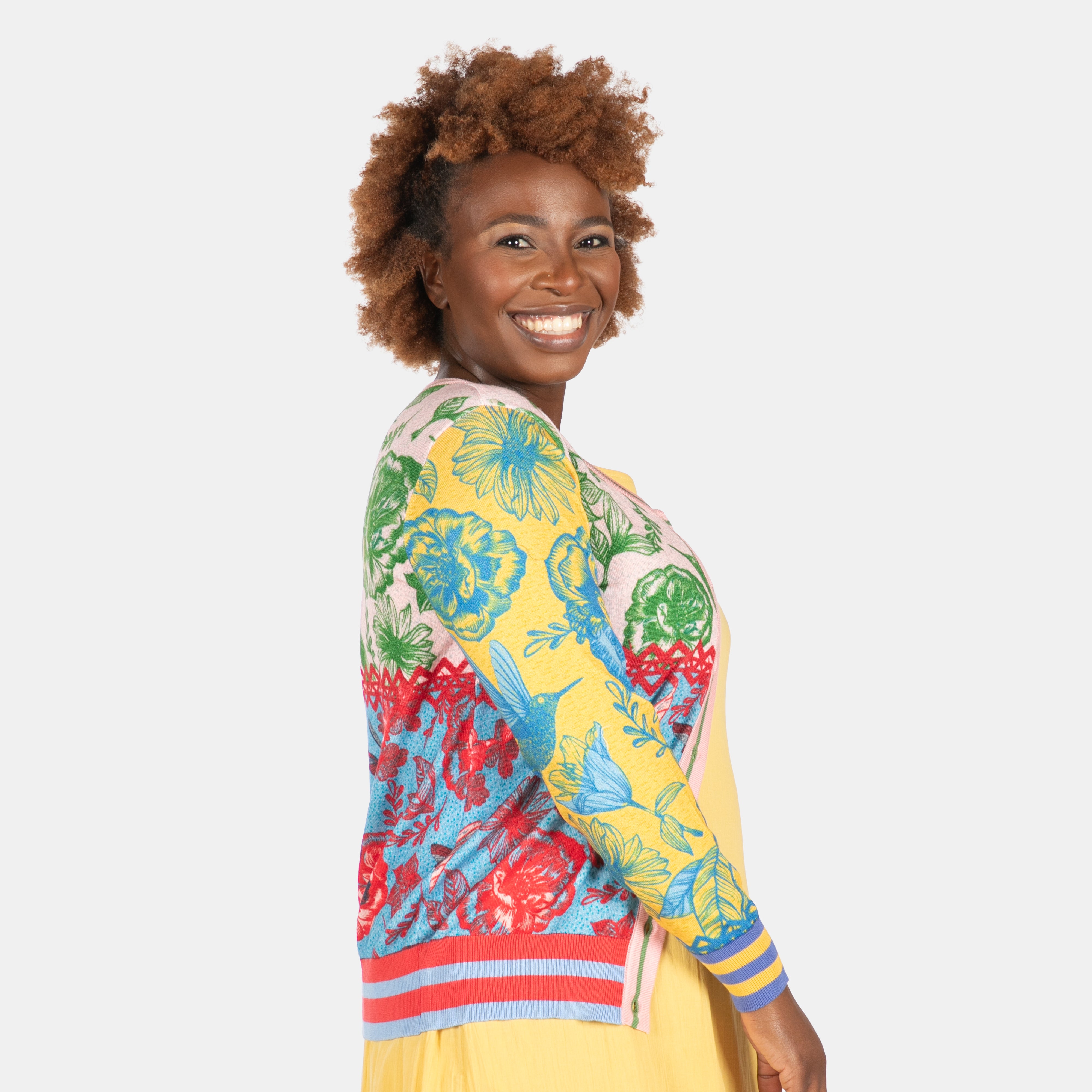 Get ready to turn heads with this eye-catching cardigan that's bound to spark some chatter.