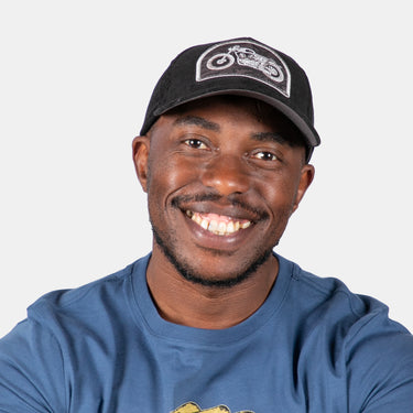 This corduroy cap boasts an embroidered patch motif of a Vintage Bike on it's front.