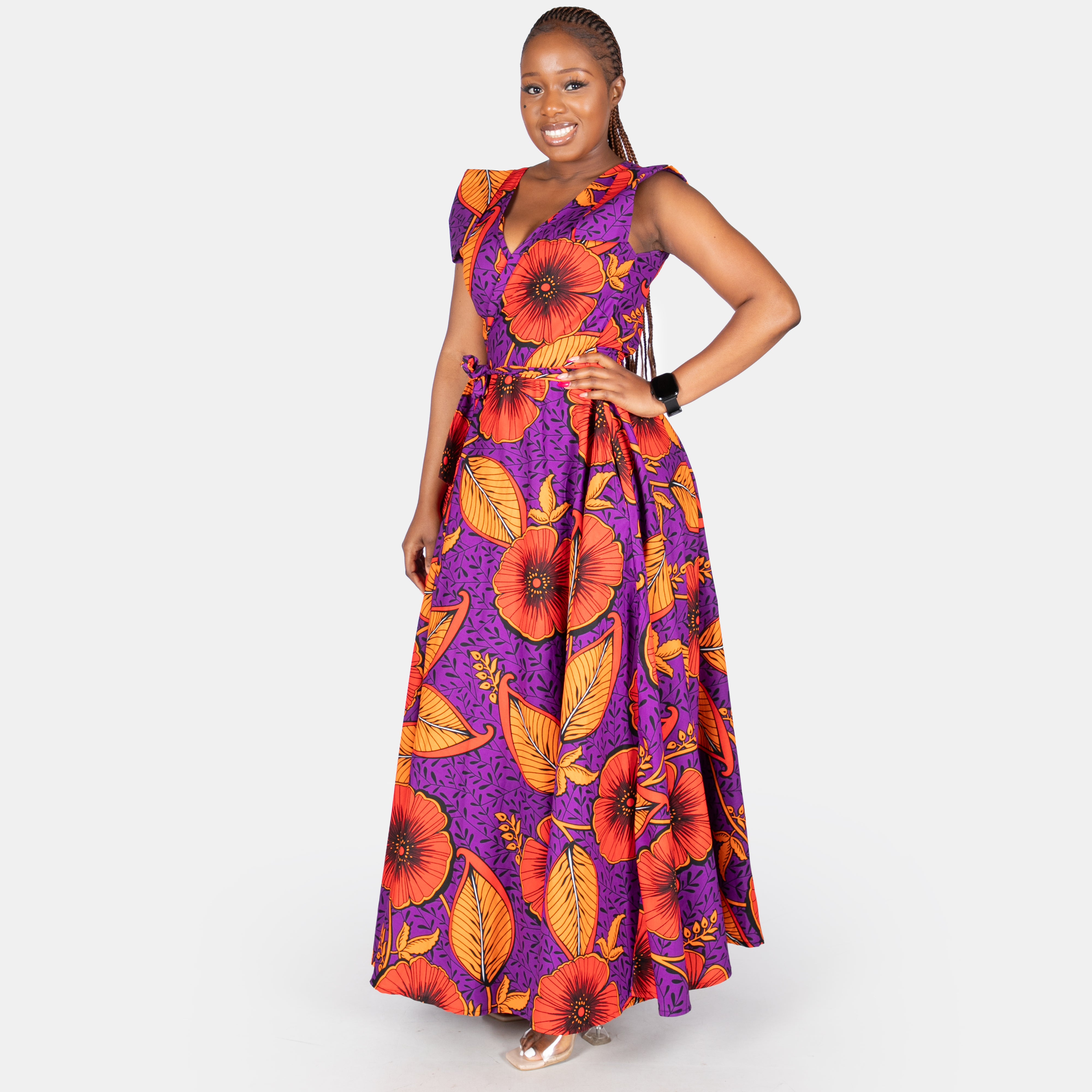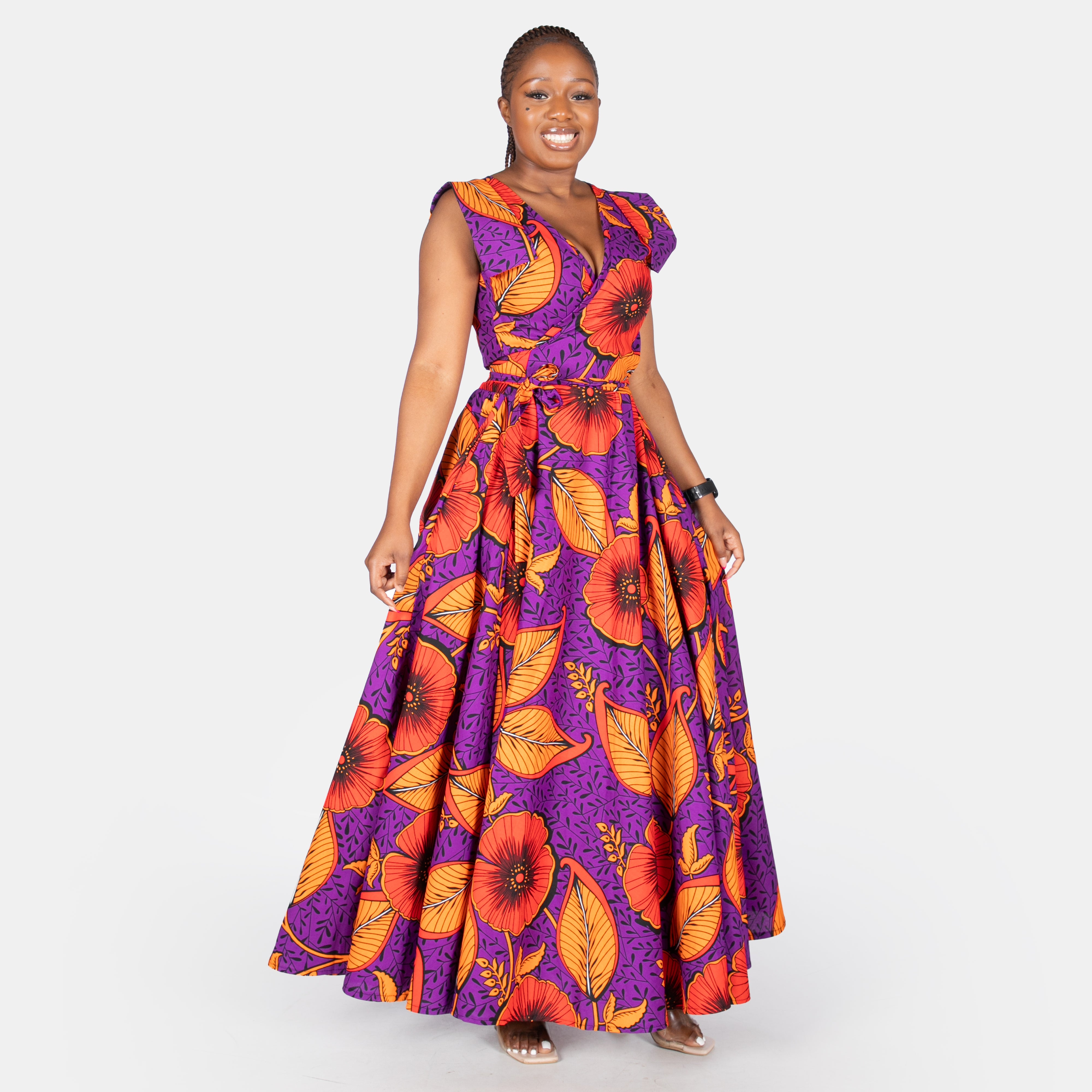 Sponono means 'cutie' or 'beautiful' and this Summer dress suits it name for sure! She boasts a V-neck with a cross over bodice and short shoulder flaps for sleeves that keep you cool in the hottest weather. The voluminous skirt crosses at the waist with ties that thread through slits in the side like a ballet wrap. Tie the belt in the front or the back depending on your preference. Wear the Sponono with flats or heels to create the look you enjoy the most. Available in sizes Small to 3XL. 100% Cotton.