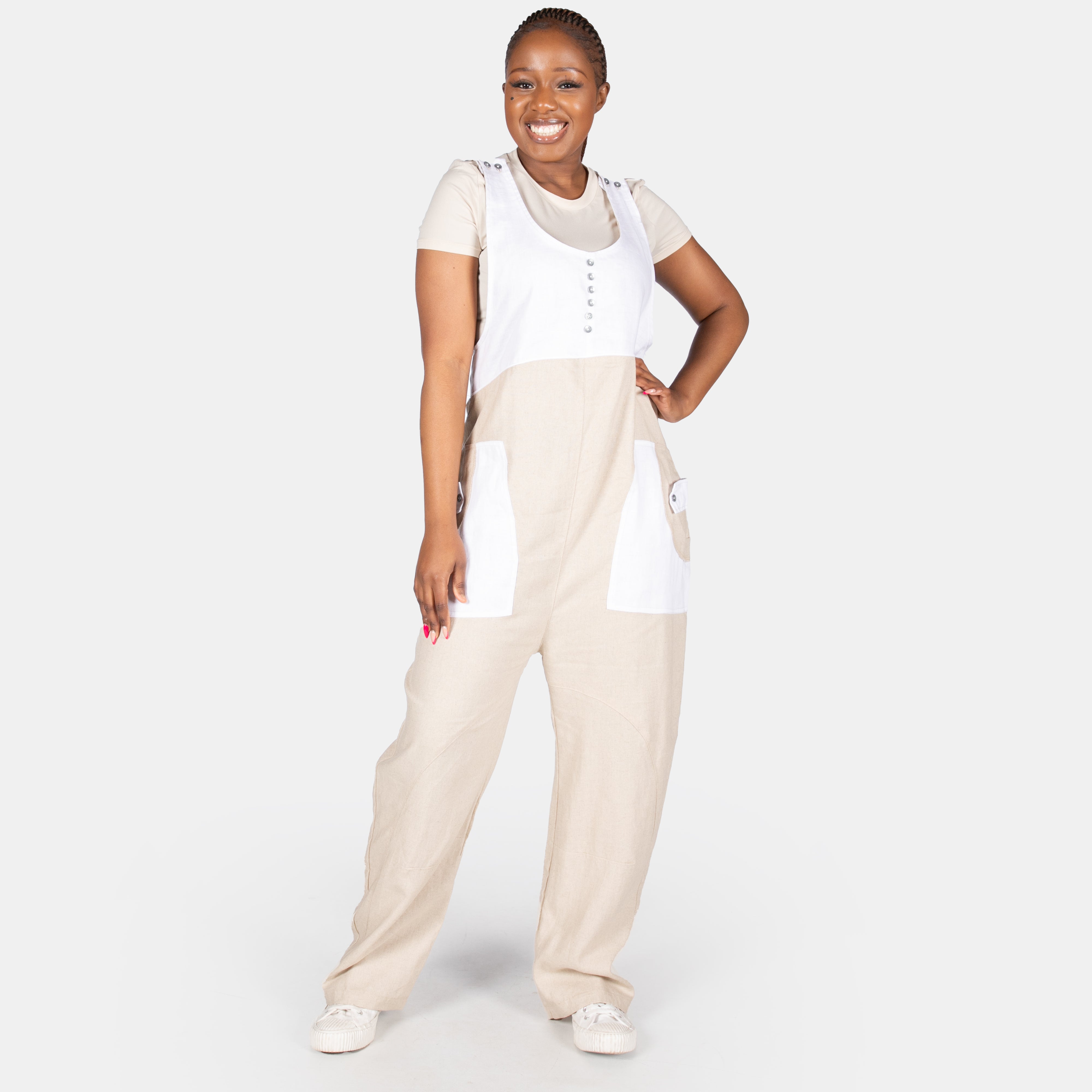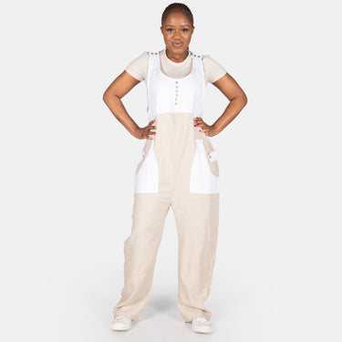 Ladies' Linen Button Dungaree - Stone