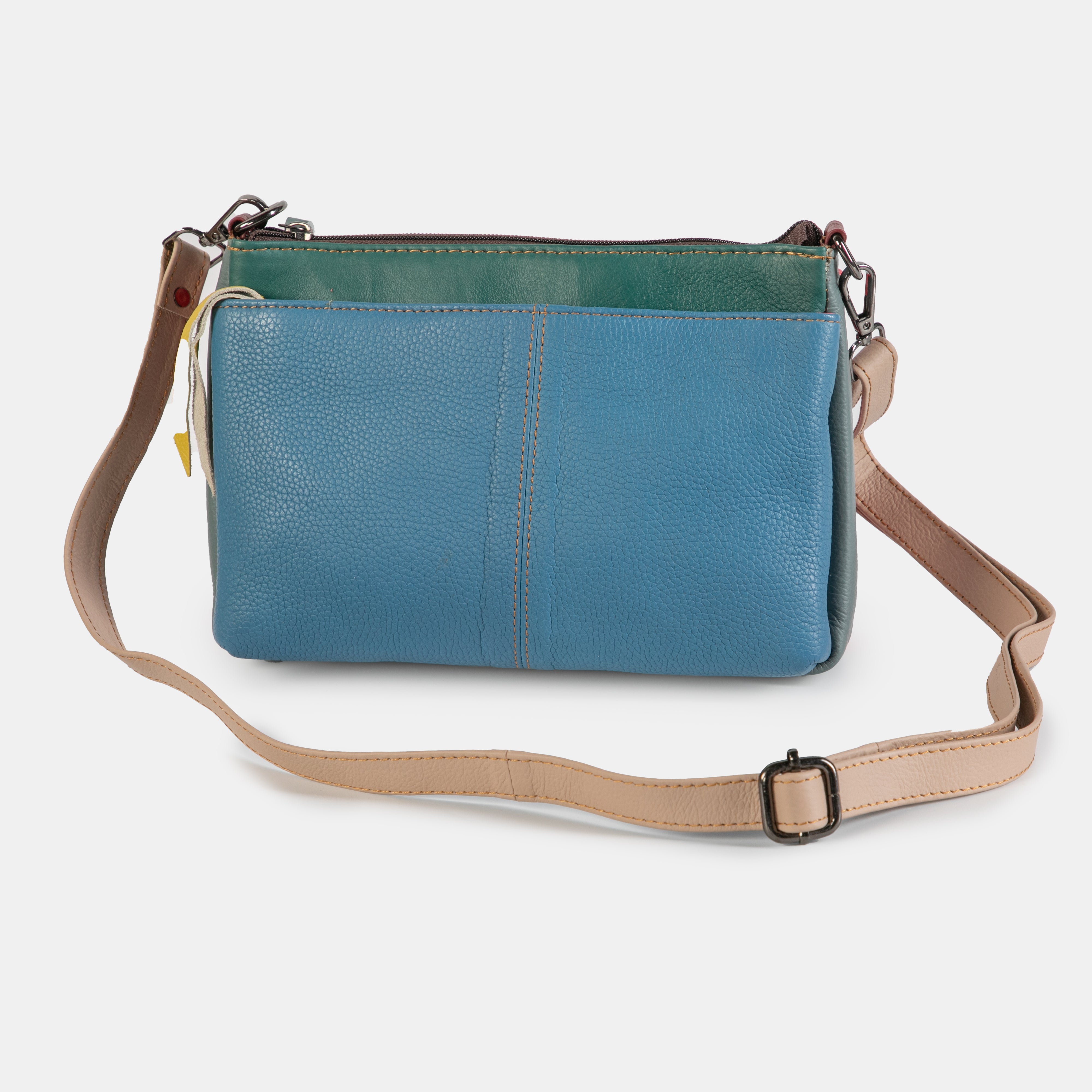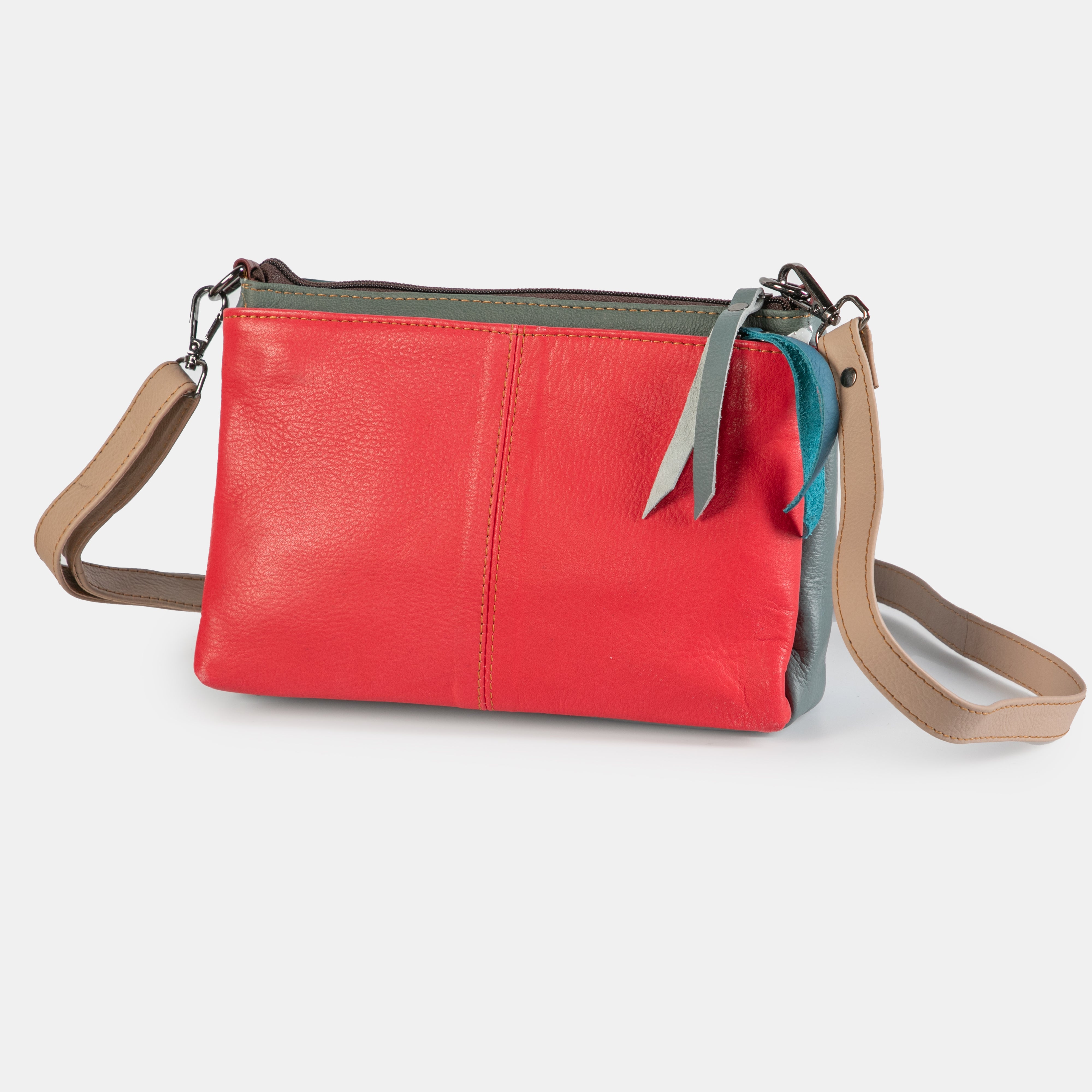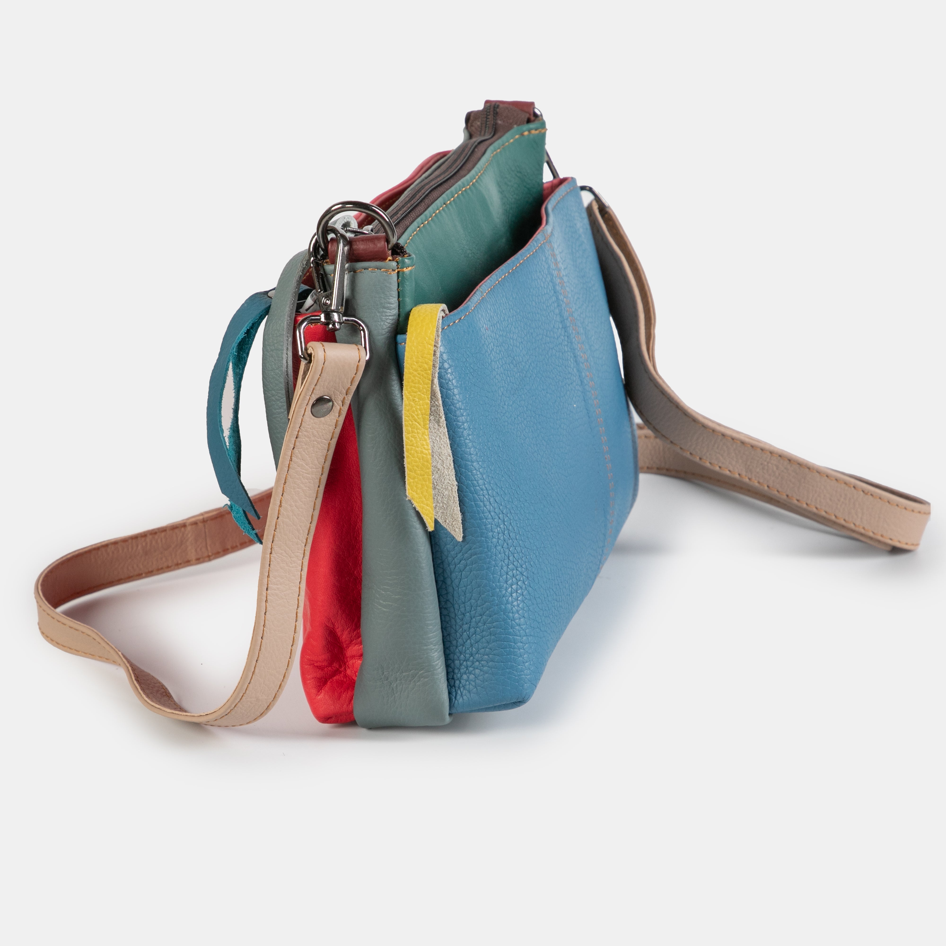 Crafted in genuine leather, this bag has multiple zipped compartments in different bright colours, tasselled zips and an adjustable cross body strap that is also removable.