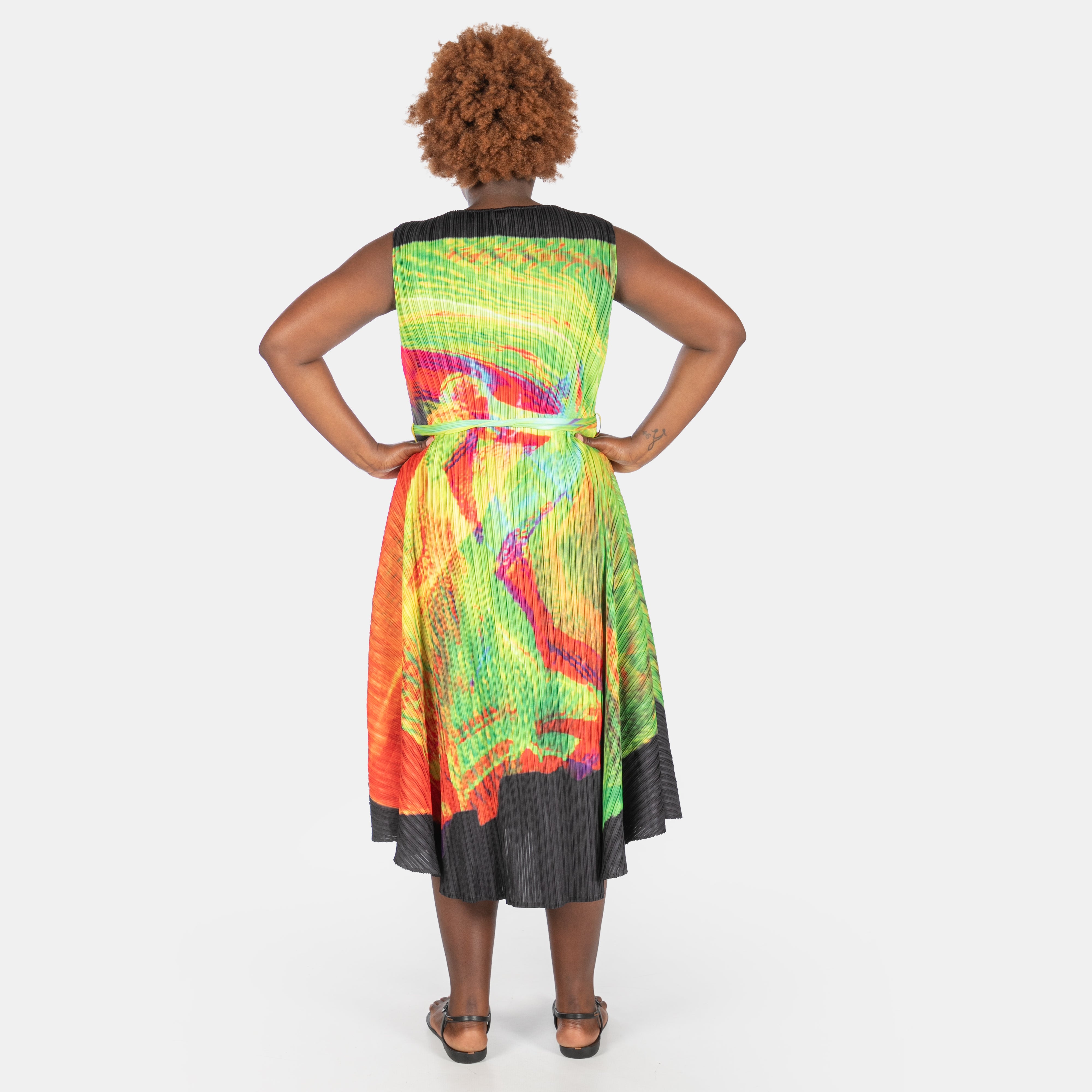 This sleeveless stunner features a flattering round neckline and comes with an optional belt to switch up your look whenever you fancy.