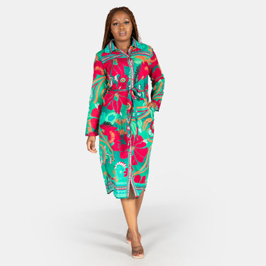This shirt dress has a full collar and buttons all the way down the front. The sleeves are full length and there's a removable belt at the waist. Made of 100% cotton, the fabric is sheer and therefore slightly see-through. Style it as a tunic or dress!