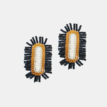 Handcrafted right here in South Africa, these charming earrings feature an intricate beaded shape in the traditional cameo design The black and white palette is perfect for all year round.