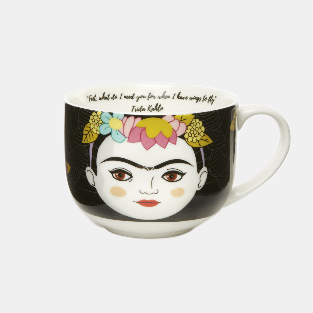 Sip your way to inspiration with this quirky 355ml ceramic mug featuring a painting of Frida Kahlo's iconic face.