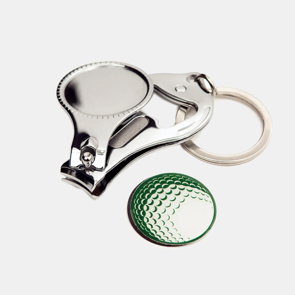 Marker, keyring, bottle opener, and nail clipper all in one, because every golfer knows that looking good on the green is half the game.