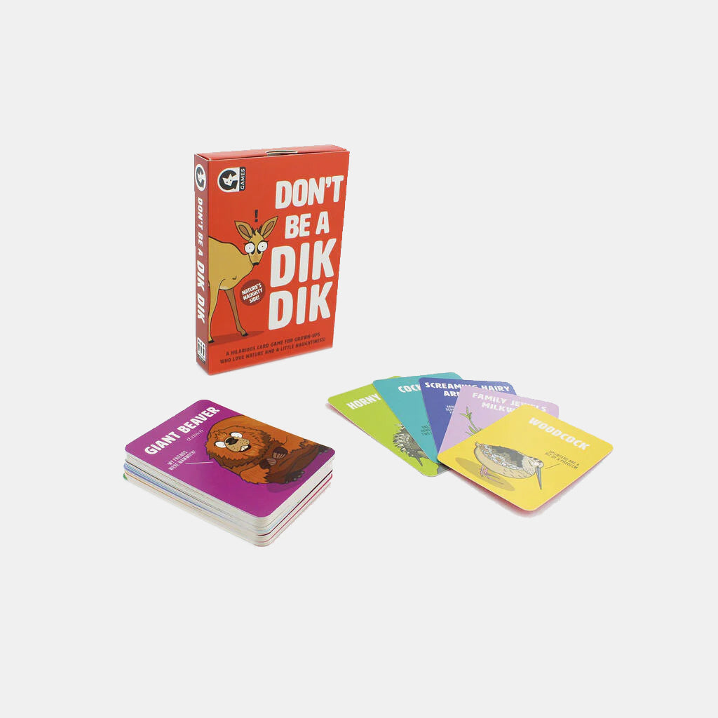 From the tufted titmouse to the sticky willy, you'll be giggling your way through rounds of strategic card play. The goal? Don't end up holding the notorious Dik Dik when the game concludes, that's the losing hand nobody wants.