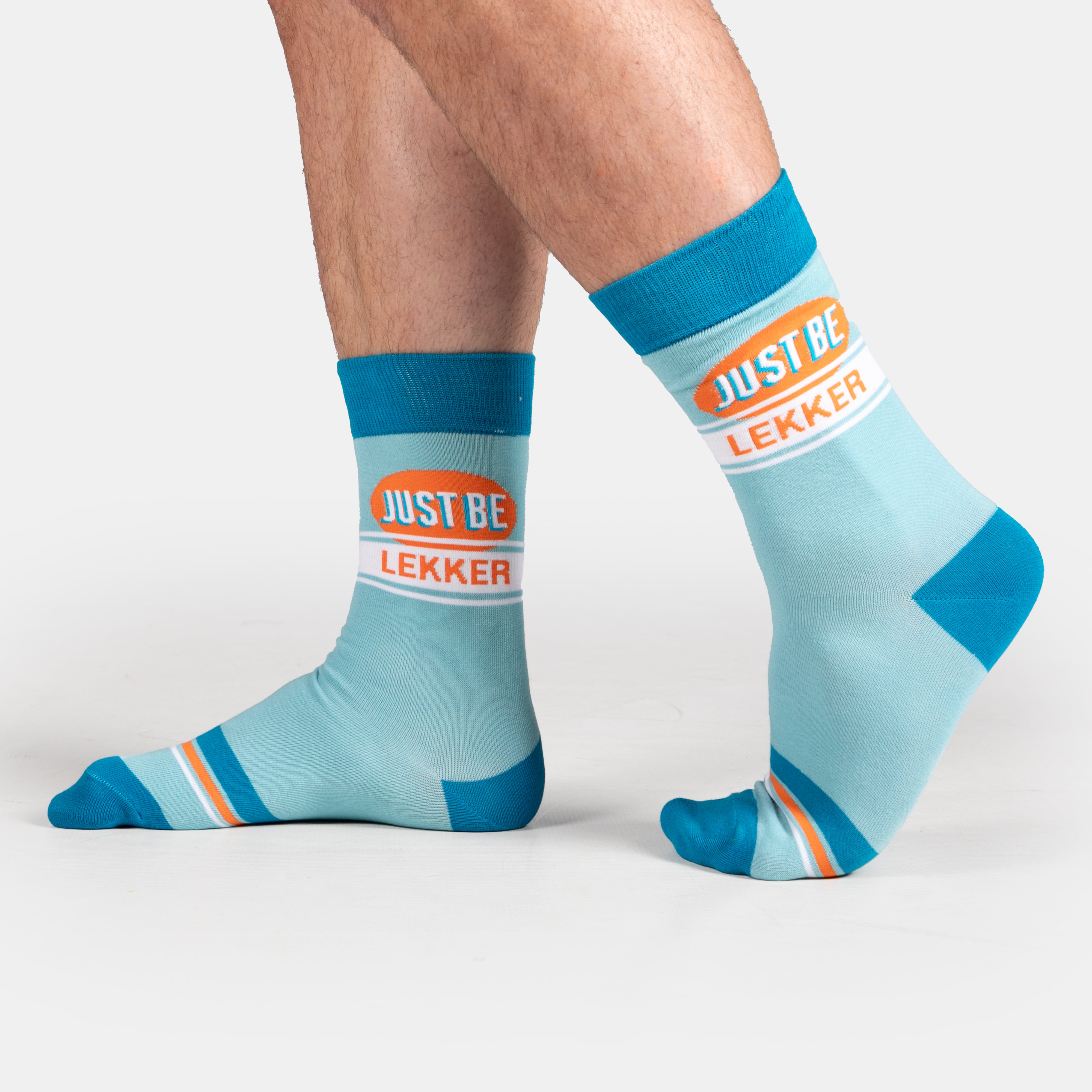 These socks are spun in 90% Cotton to ensure they stay soft and 10% Spandex to keep them in place. They feature a deep rib ankle, ribbed heel and toe with the words "just be lekker"