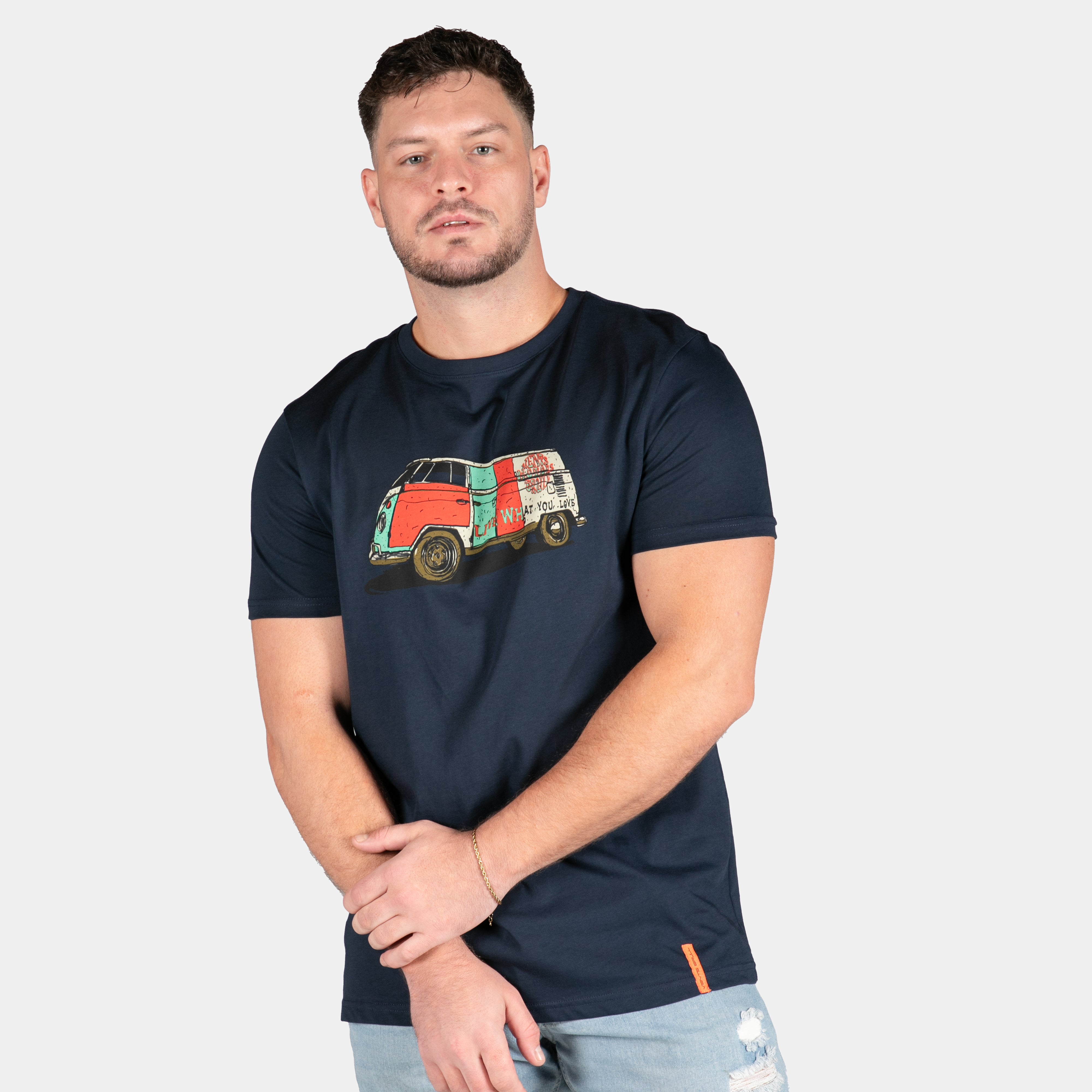 Enjoy a slice of retro cool with this men's tee, featuring a vibrant vintage VW Kombi design that celebrates the iconic camper van spirit. Live What You Love!