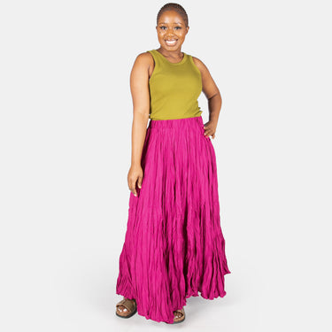 Falling to your ankle the silky fabric cascades down in permanent creases to create flow when you move.