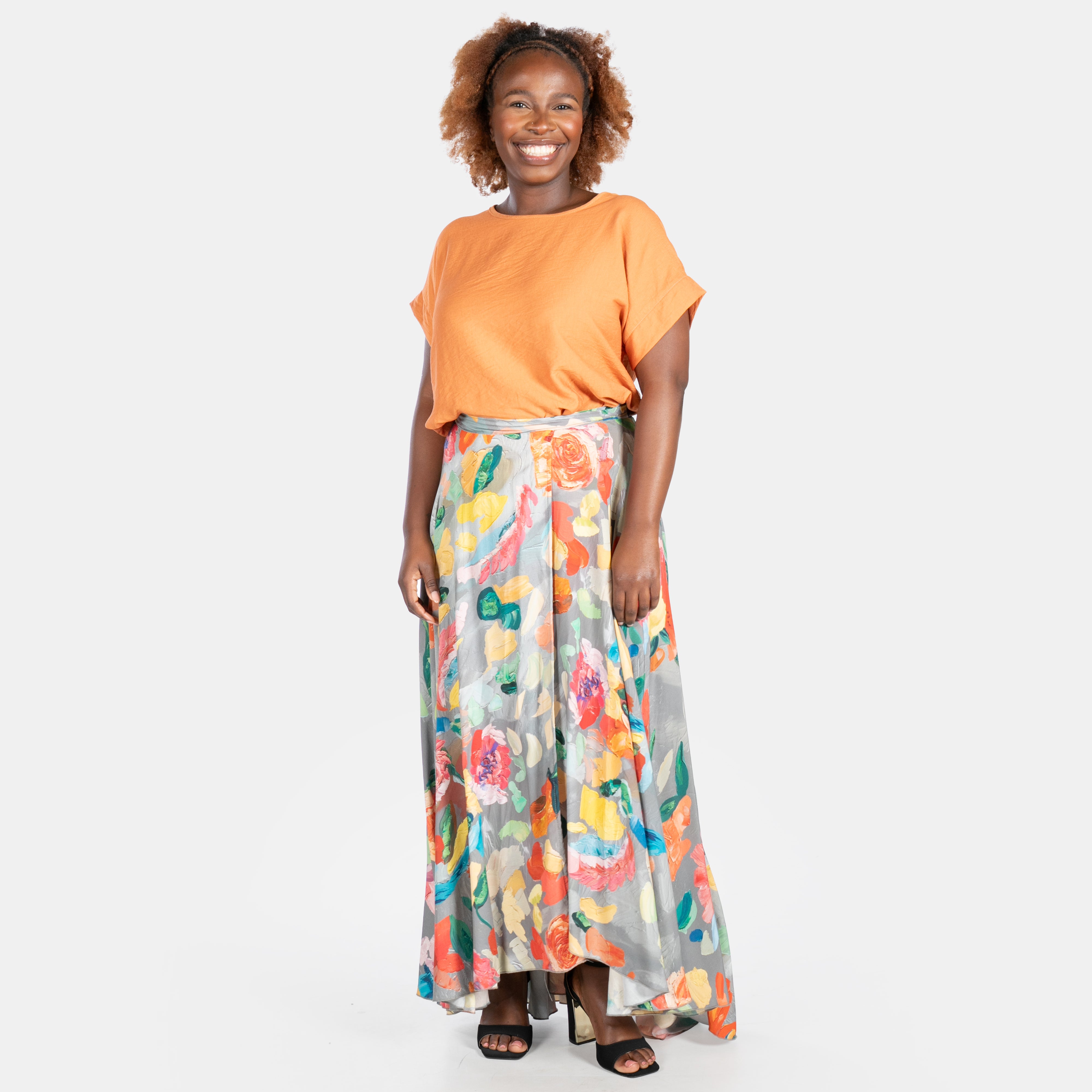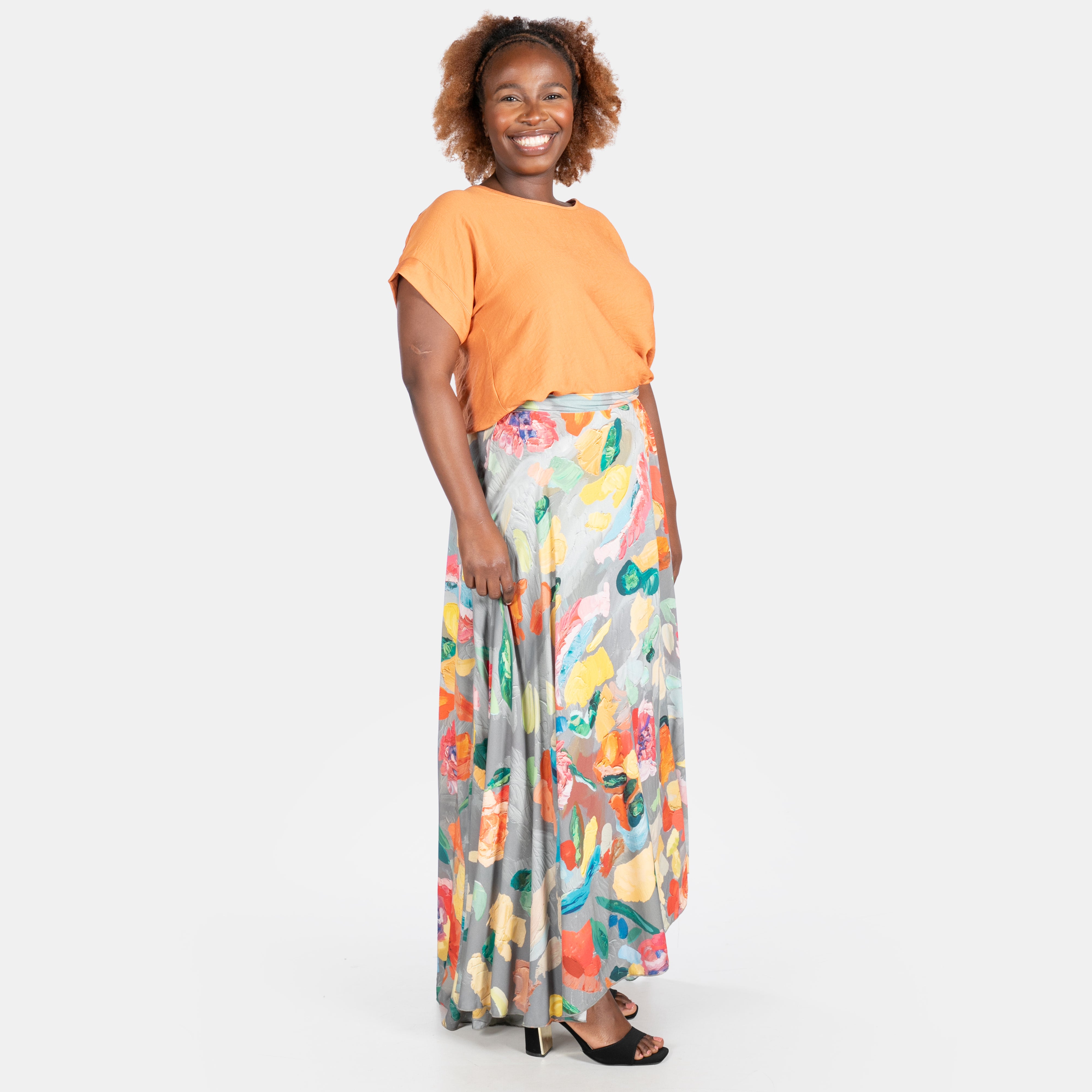 This flowing long skirt adds an elegant statement garment to your Summer collection.