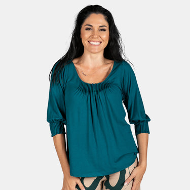 The 3/4 sleeves also feature the pleats on the elasticated cuff.