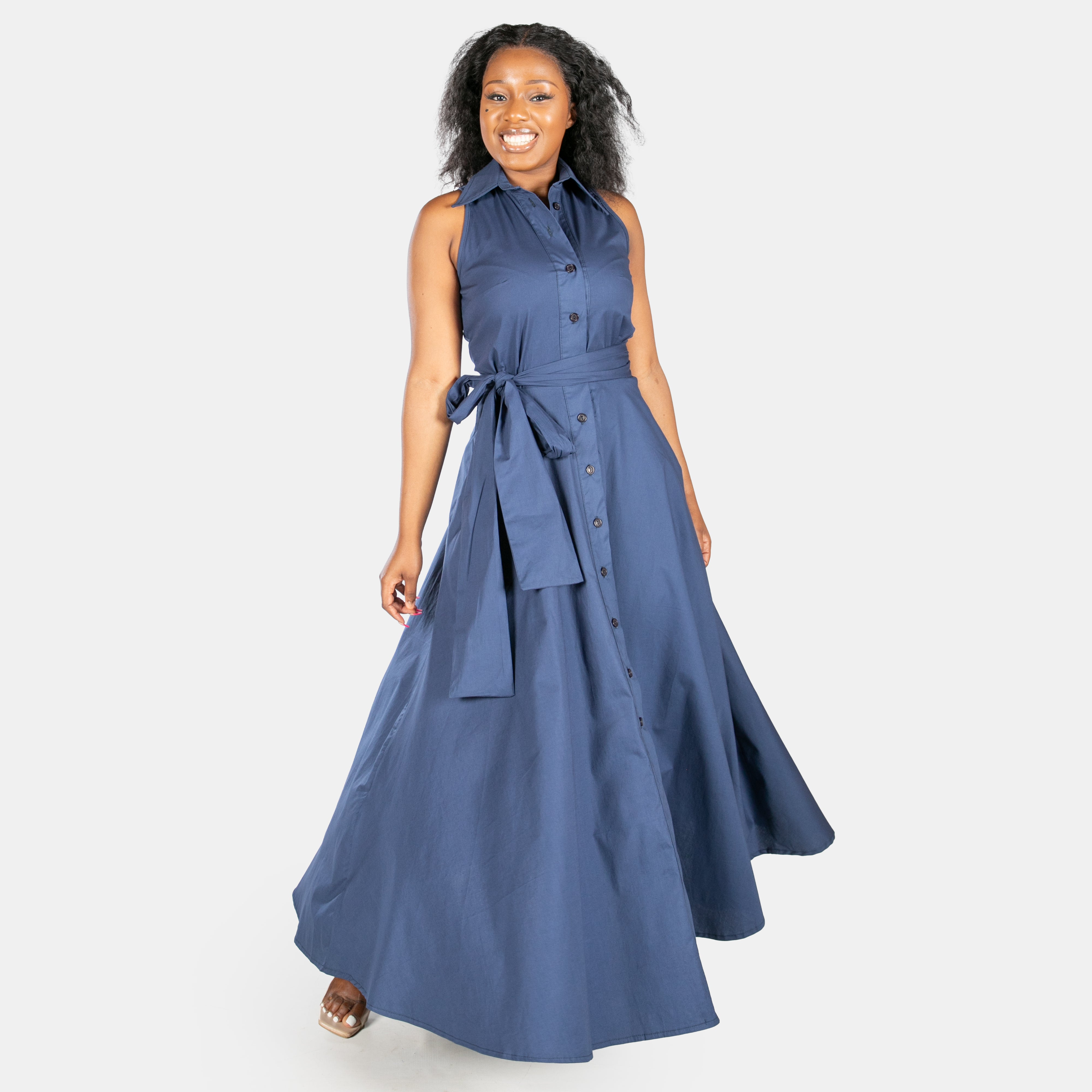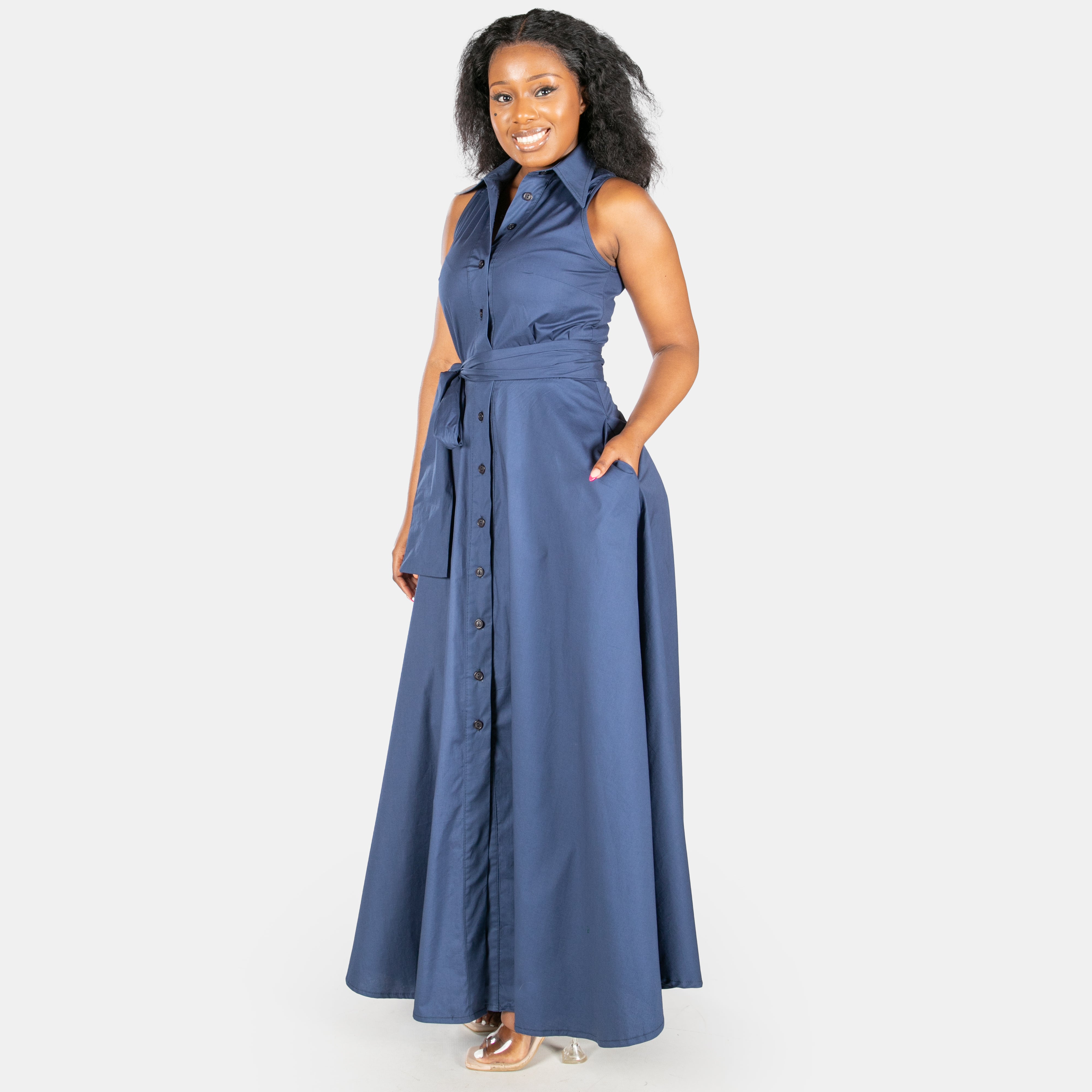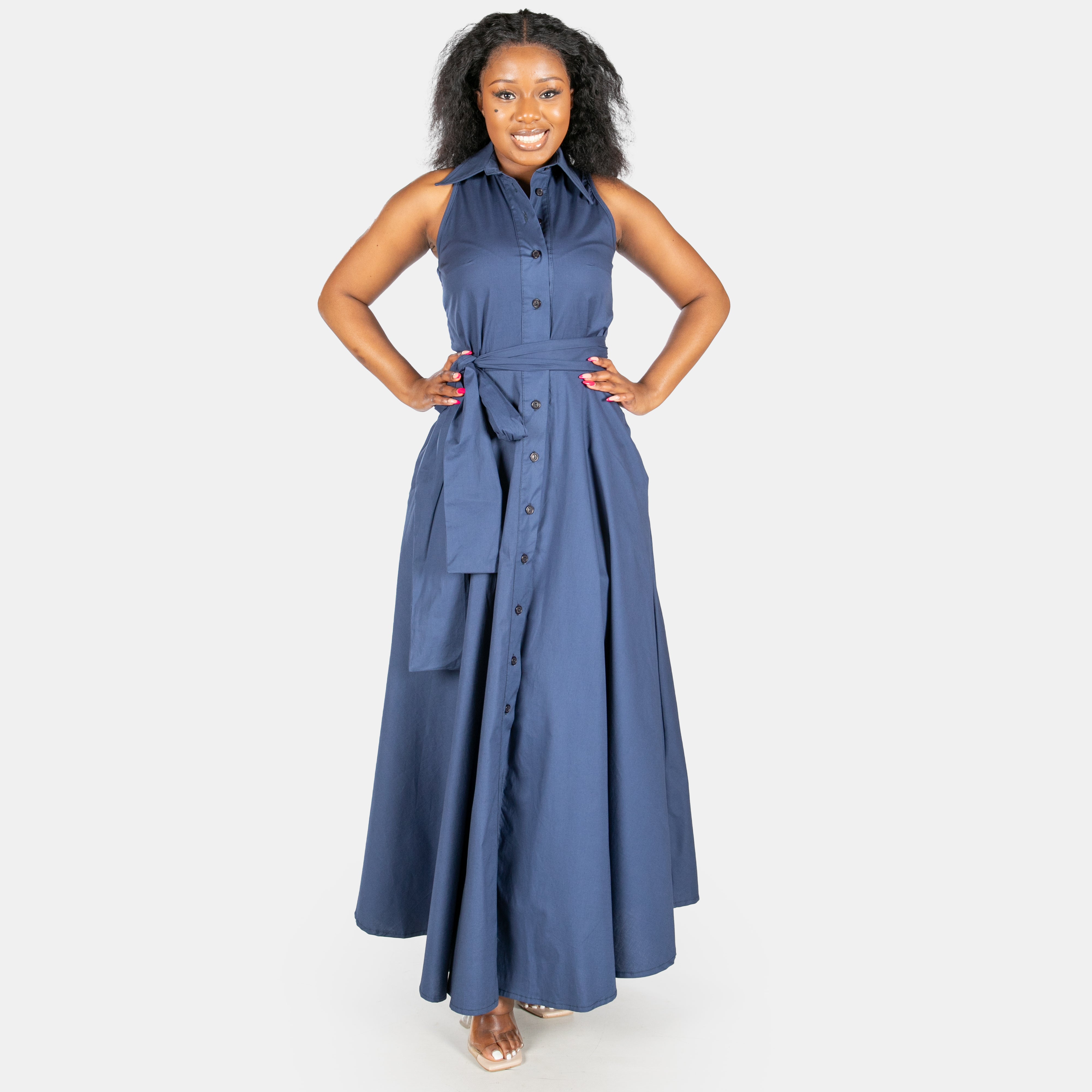 Ladies' Madrid Wrap Dress with Colar - Navy