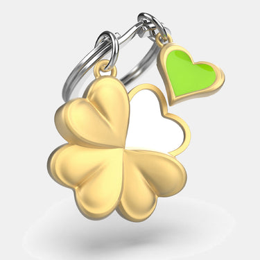 This Clover keyring features a stylised design of a clover and a green and gold heart, made possible by cutting-edge technology.