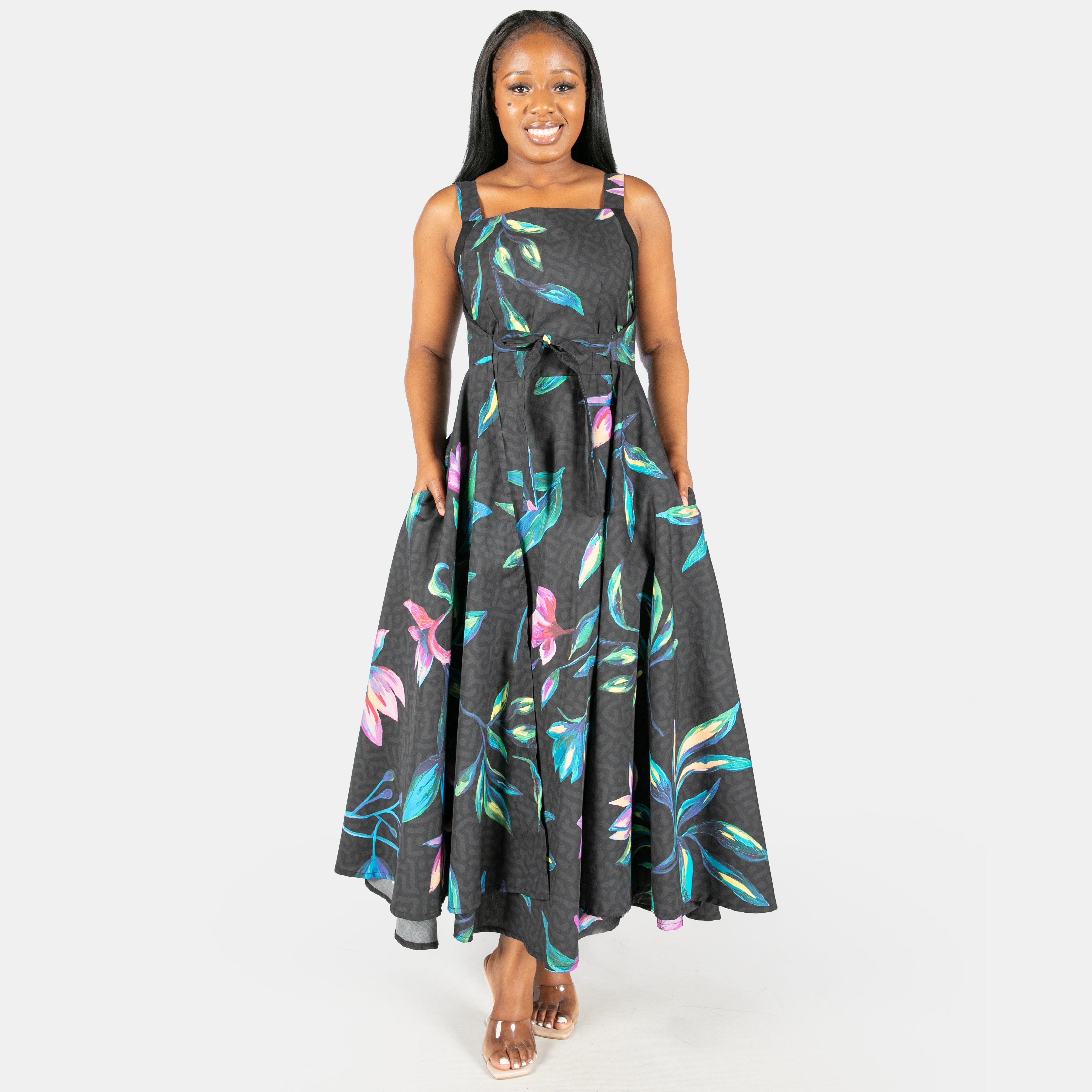 The Melrose dress features a striking full skirt. The bodice boasts a square neck with shoulder straps creating a smart and clean cut décolletage. The versatility comes from two straps attached to the bodice on each side just under the arm. These can be tied in the front creating an almost 'bustier' silhouette or tied at the back producing a more streamlined cut. Either way you will look sensational in this beauty. Stunning with heels and suitable for every occasion from picnics to weddings.