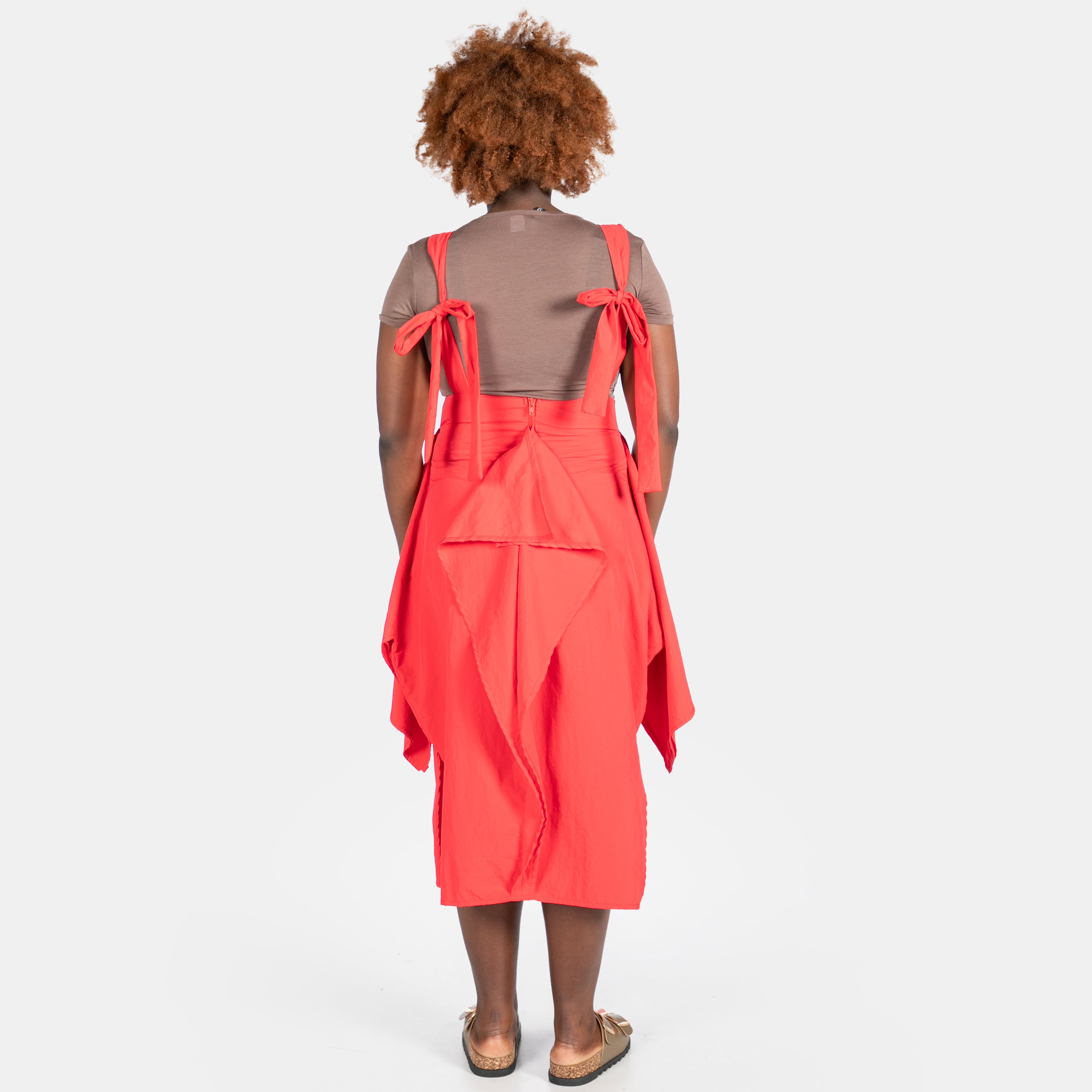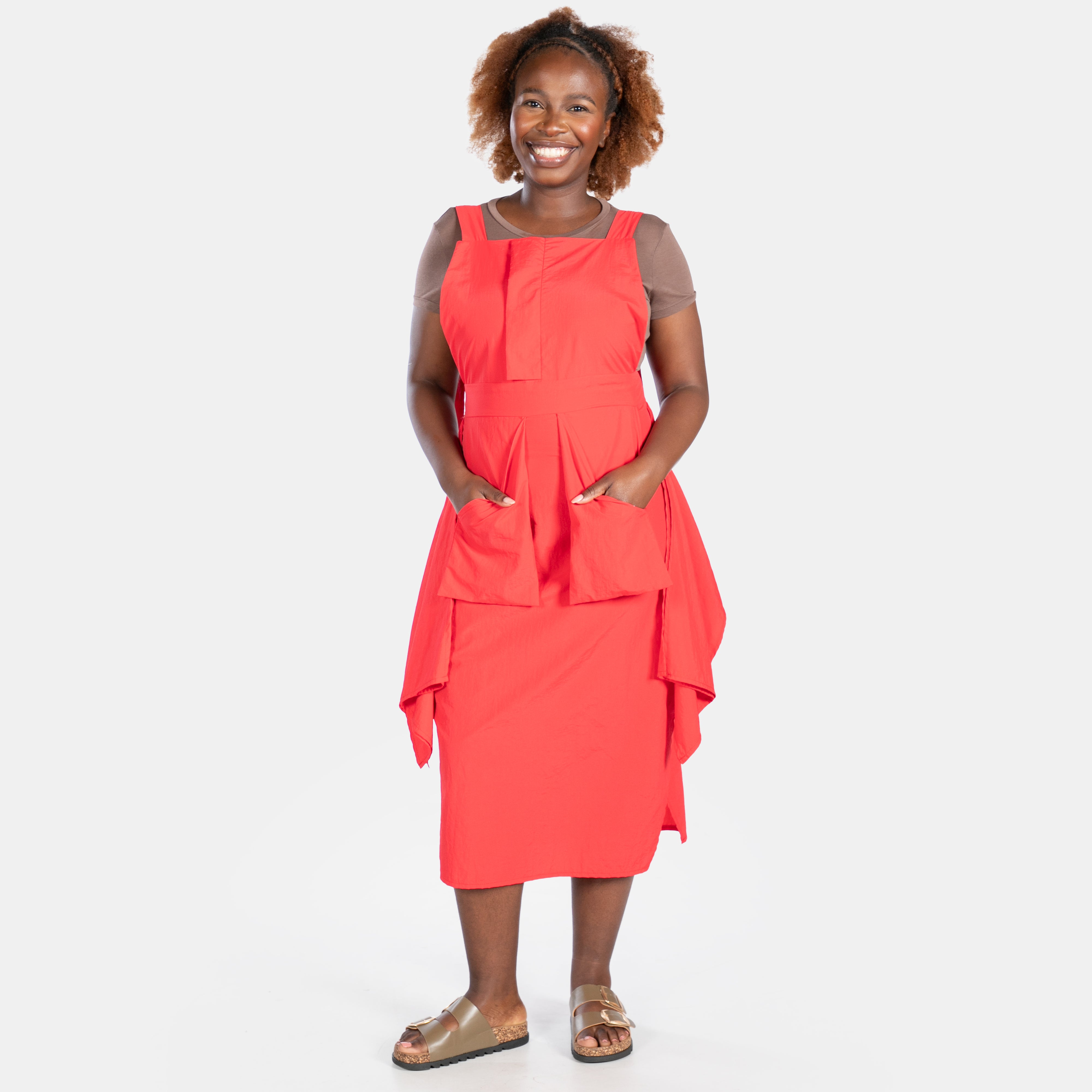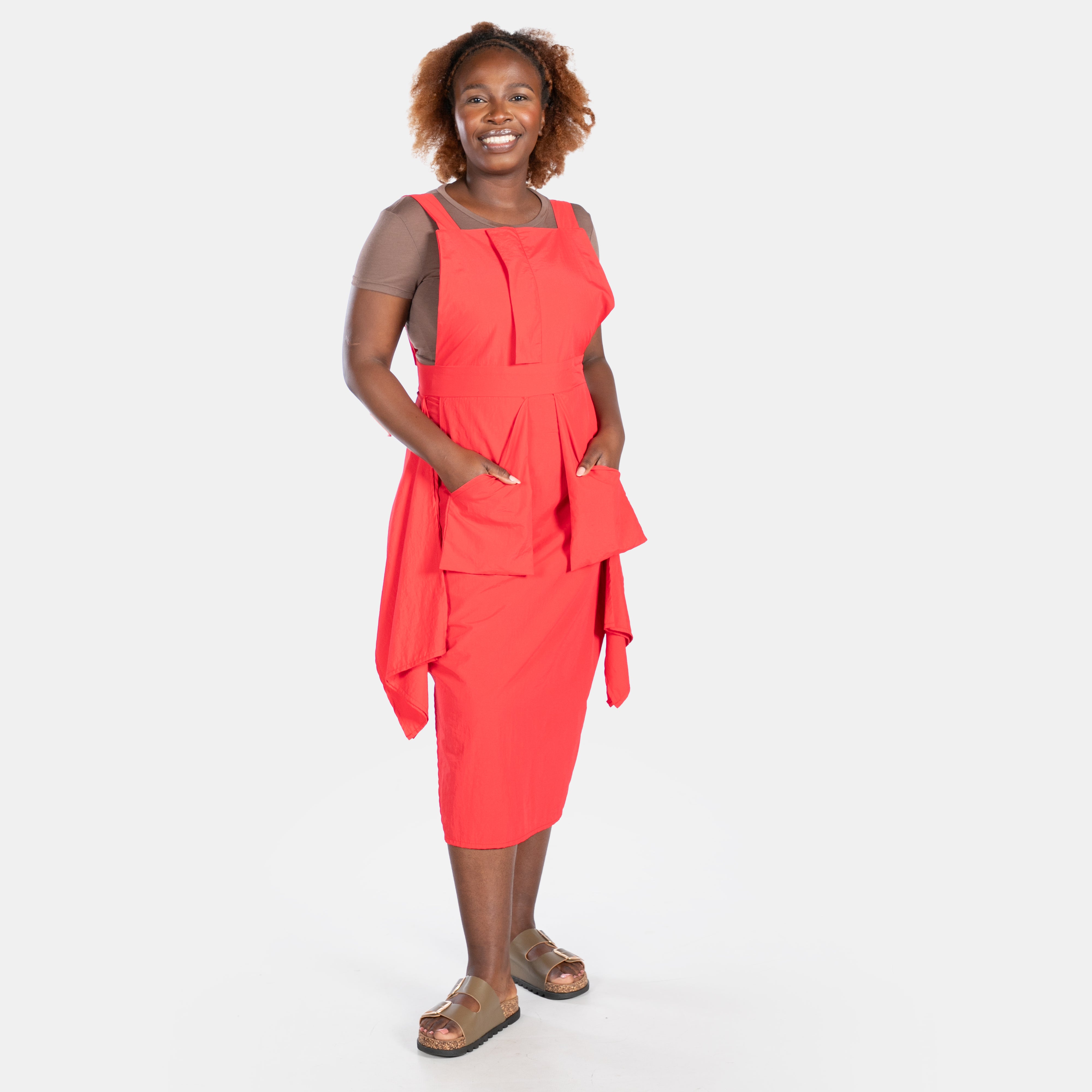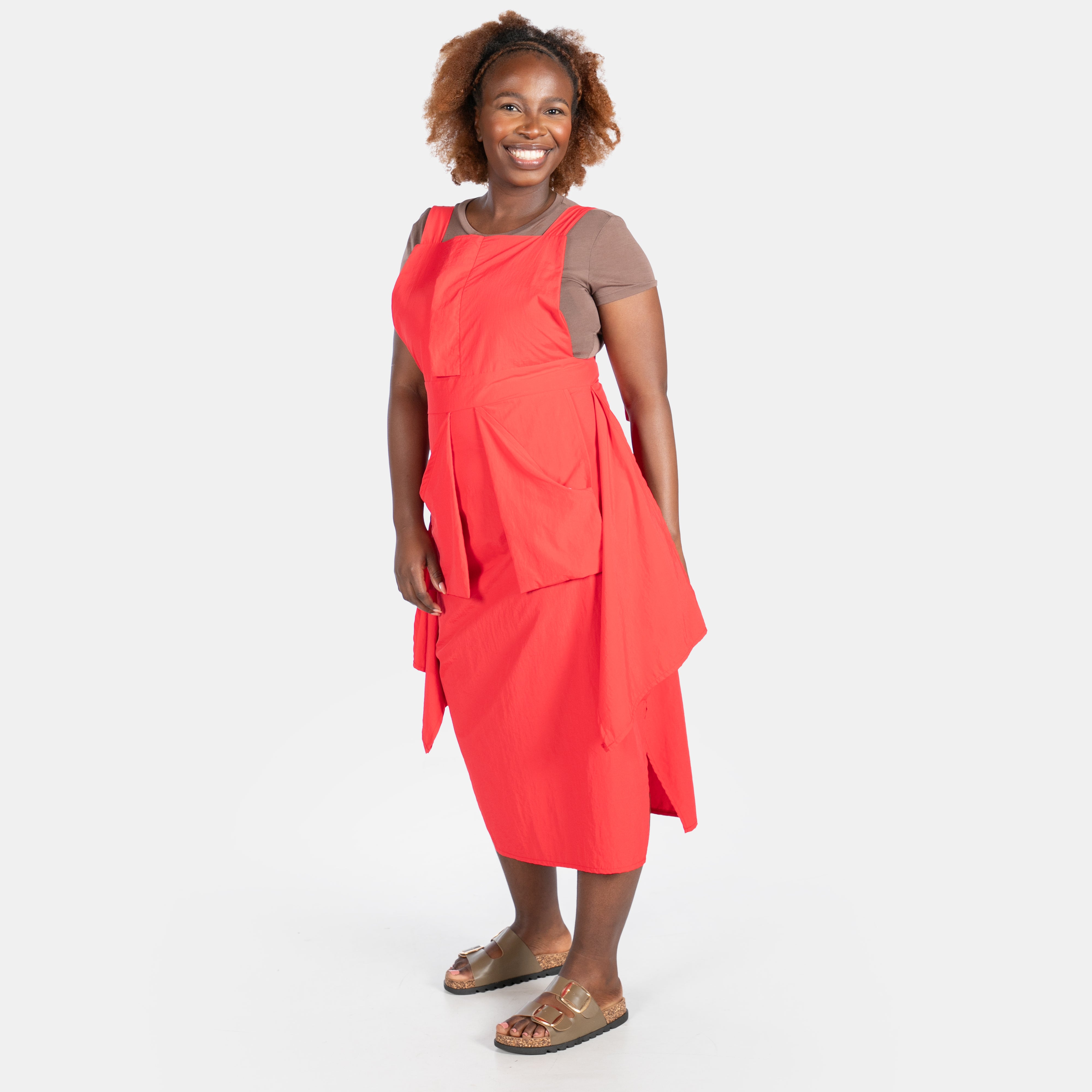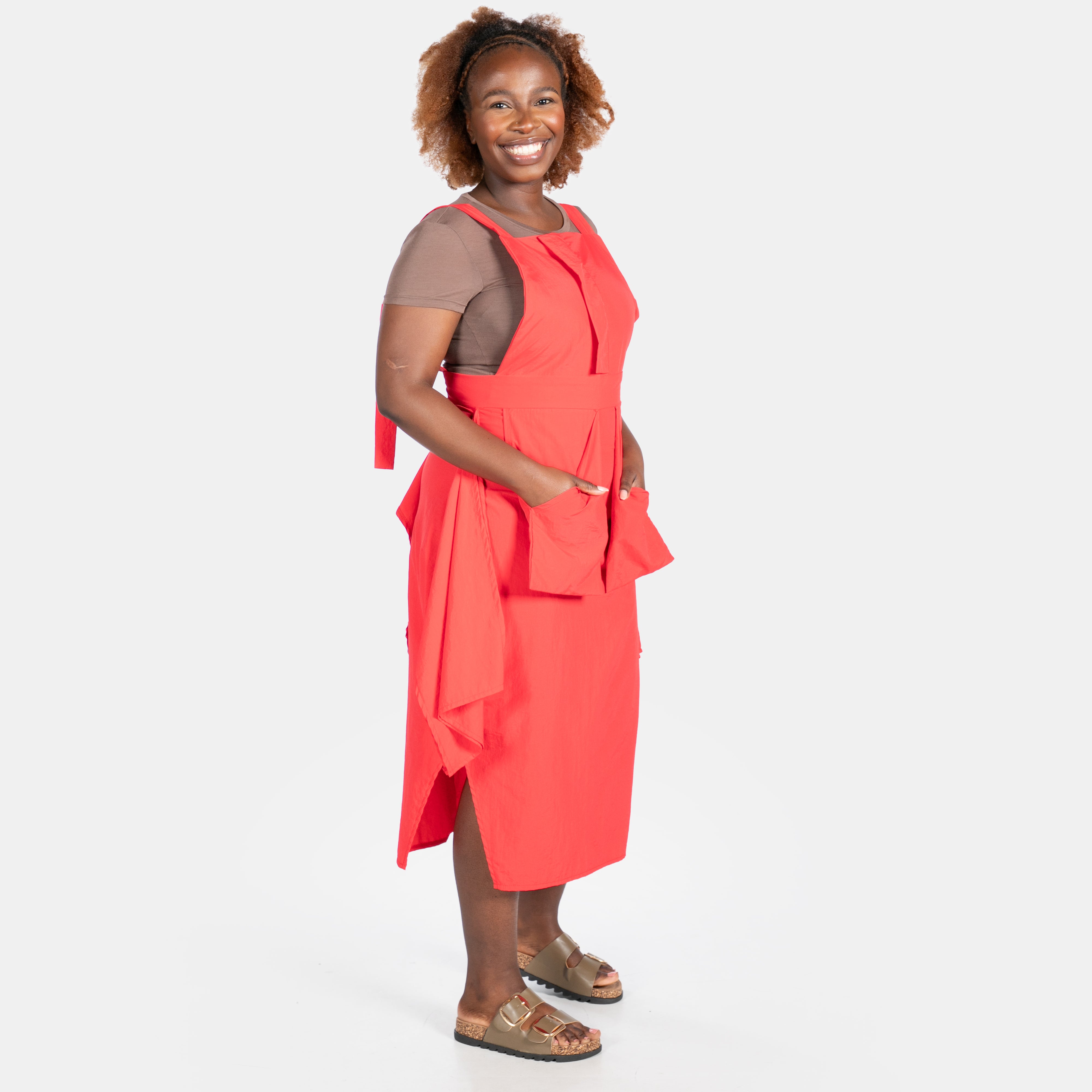 This striking tunic draws inspiration from classic pinafore styling, featuring a structured bib front and adjustable back ties for the perfect fit. Intricate pockets, pleats and tucks throughout add textural depth and movement to the design. Layer it effortlessly over your favourite tee or blouse, then personalise with accessories that reflect your individual aesthetic. A versatile piece that elevates everyday dressing with edgy layers.